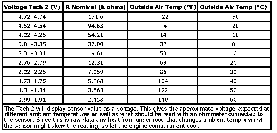 Sensor Resistance Table (Volts to Temp to Resistance):