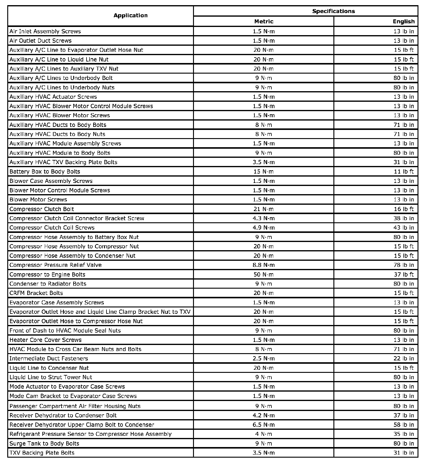Fastener Tightening Specifications - Heating, Ventilation and Air Conditioning: