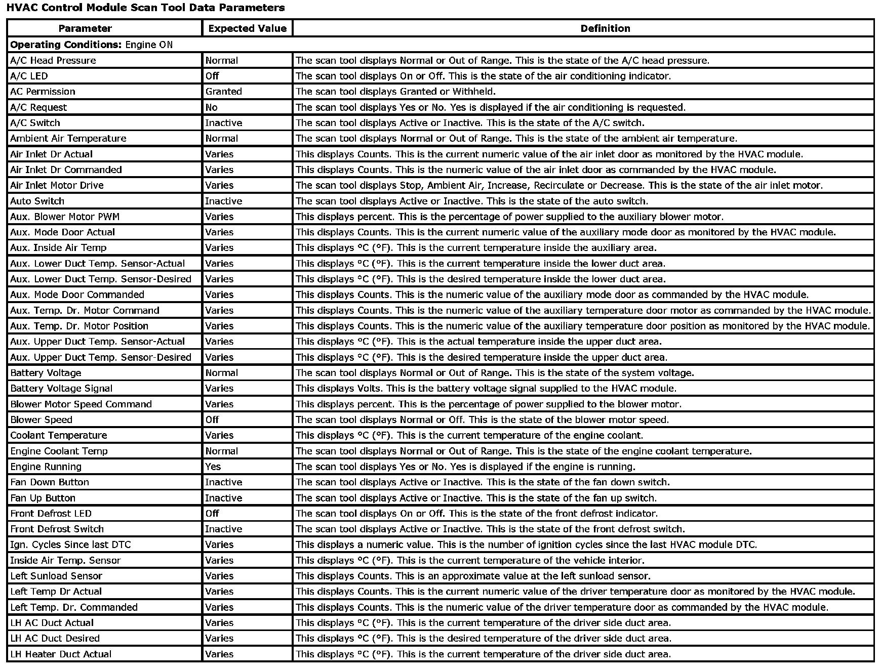 HVAC Control Module Scan Tool Data Parameters (Part 1):