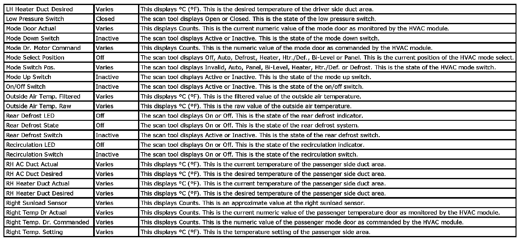 HVAC Control Module Scan Tool Data Parameters (Part 2):