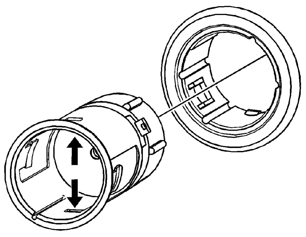 4. Align the tabs on the receptacle to the slots in the retainer. Install the accessory power receptacle by pressing into place until fully seated.