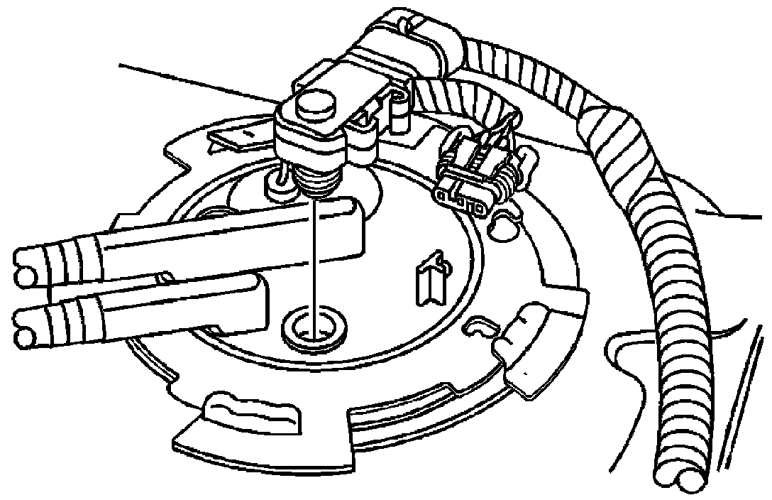 1. Install the fuel tank pressure sensor to the fuel pump module assembly. Ensure that the sensor grommet is fully seated to the pump module.