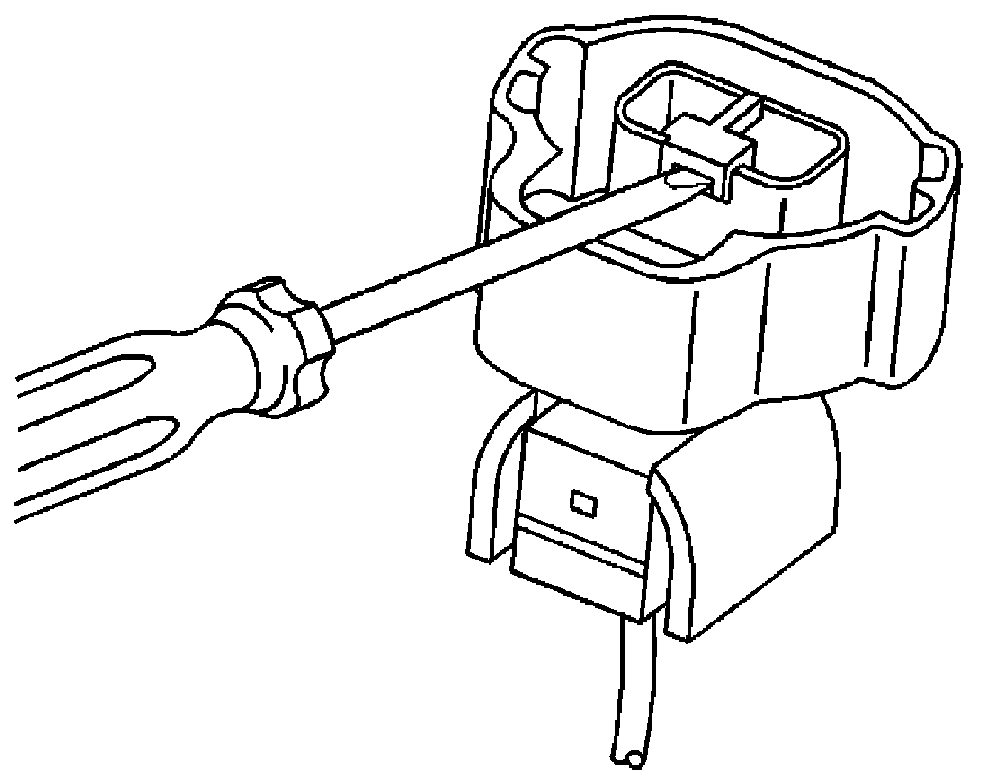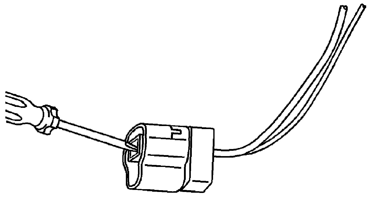 5. Insert the J 38125-553 (GM P/N 15315247) on a slight upward angle into the cavity below the terminal to be removed. Ensure that the pointed on the end of the tool is facing the bottom of the terminal and it stays in contact with the terminal until it stops on the plastic terminal retainer. See the release tool cross reference in the Reference Guide of the J-38125 to ensure that the correct release tool is used.