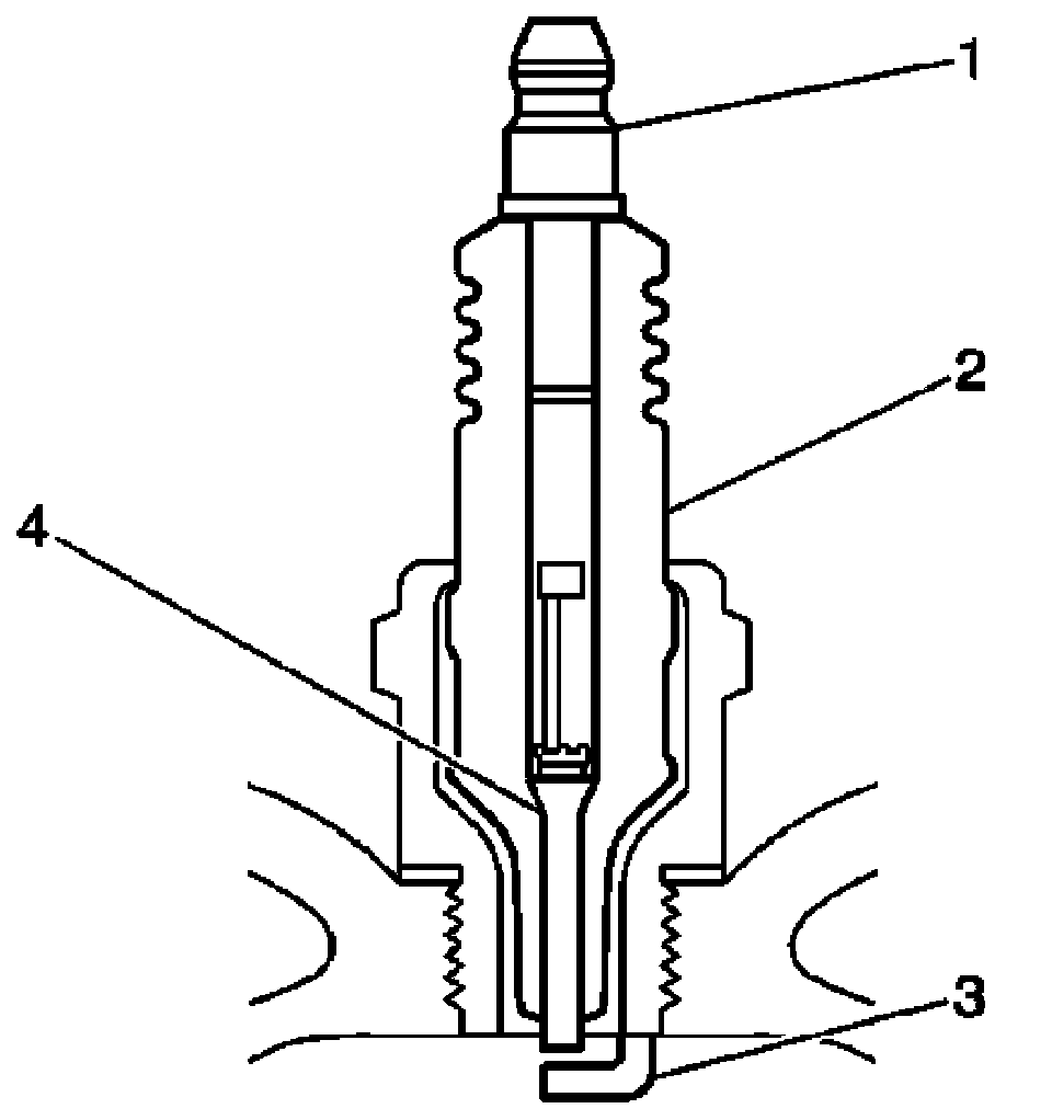 ^ Inspect for the correct spark plug torque. Refer to Ignition System Specifications. Insufficient torque can prevent correct spark plug operation. An over torqued spark plug, causes the insulator (2) to crack.