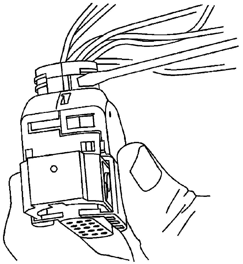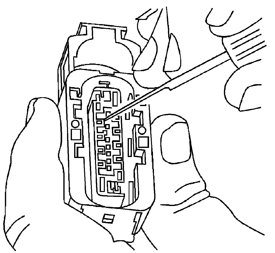 9. Insert the J 38125-12A (GM P/N 12094429) tool to release the terminals by inserting the tool into the terminal release cavity. See the release tool cross reference in the Reference Guide of the J-38125 to ensure that the correct release tool is used.