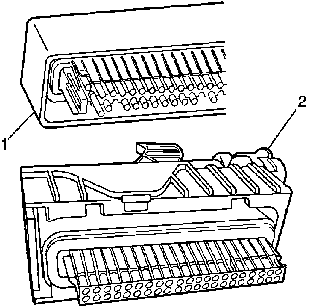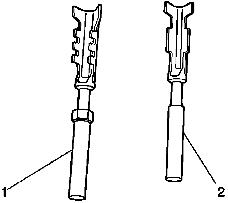 NOTE: There are 2 styles of Micro-Pack 100W terminals which are very similar. Ensure that you have the correct terminal before crimping the new terminal to the wire. The first design connector uses the longer terminal (1) that has a raised area in front of the recess in the terminal. The second design connector uses the shorter terminal without the raised area.