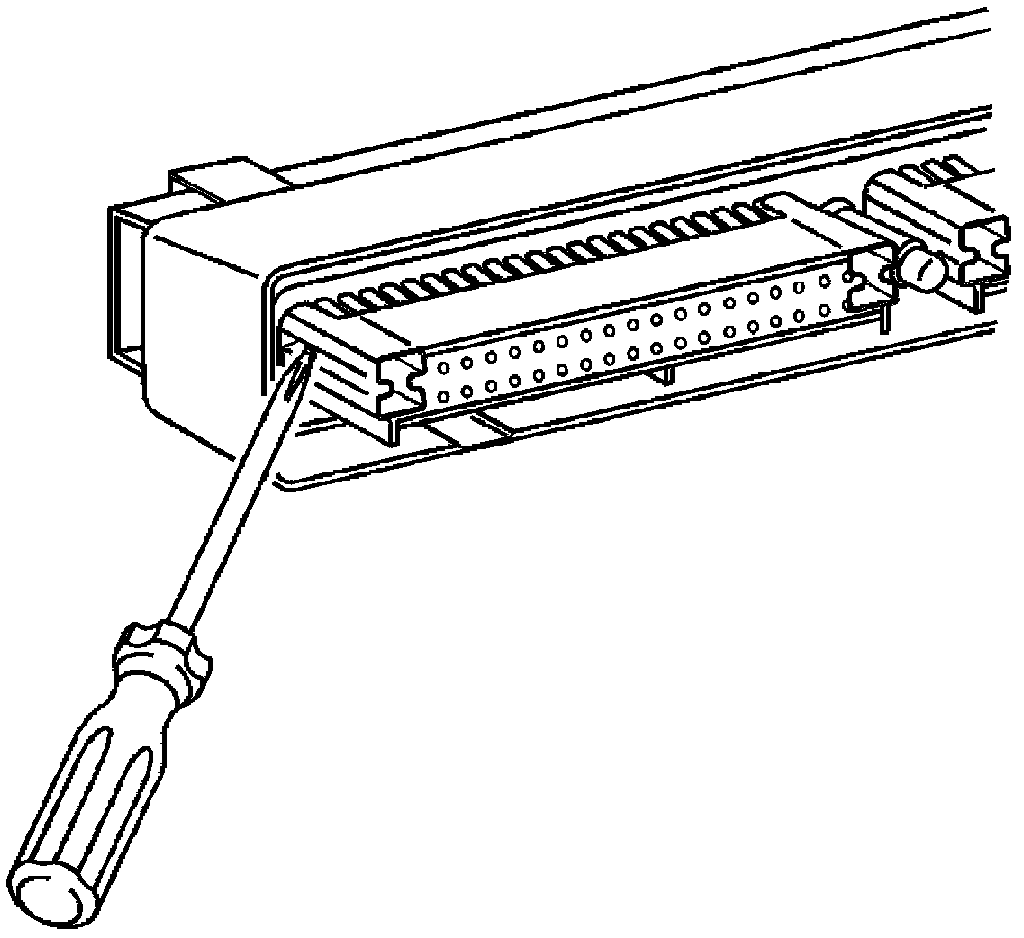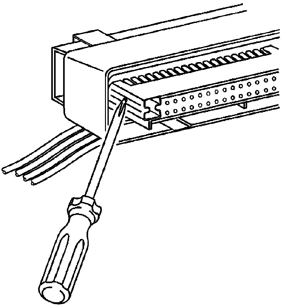 9. Use J 38125-12A (GM P/N 12094429) to gently lift the terminal retaining tab while gently pulling the wire out of the back of the connector. Always remember never use force when pulling a terminal out of a connector. See the release tool cross reference in the Reference Guide of the J-38125 to ensure that the correct release tool is used.