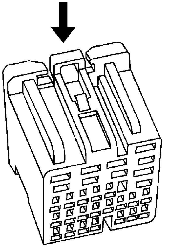 2. Locate the two indents of the terminal position assurance (TPA) located on the bottom of the connector body.