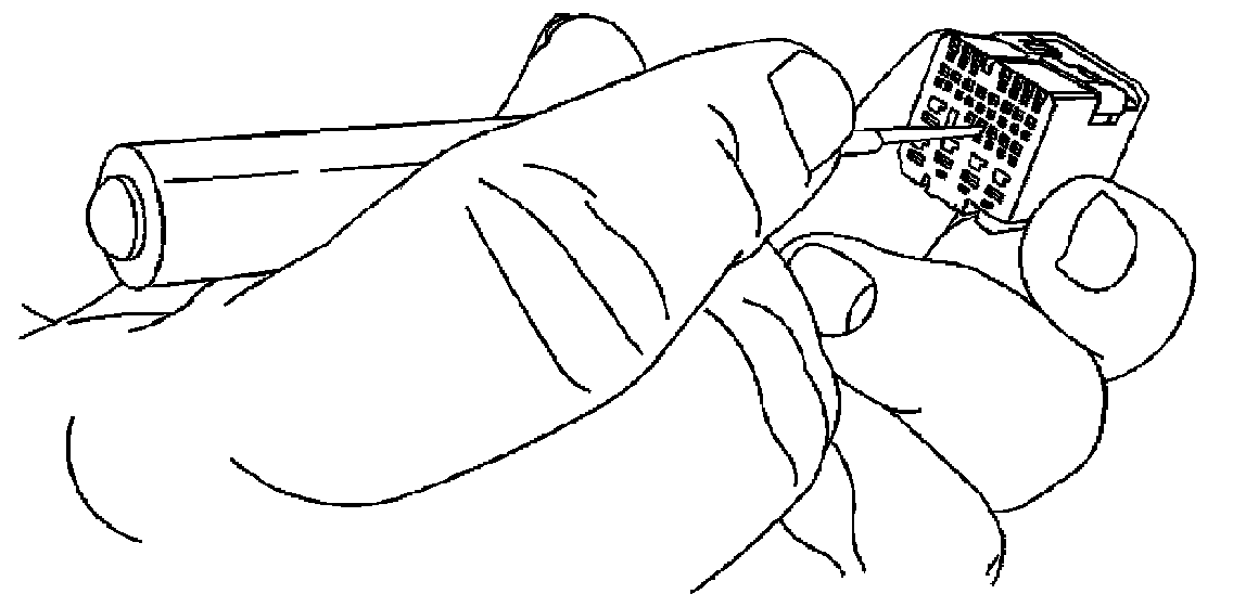 4. Use the J 38125-12A tool to release the terminals by inserting the tool into the left side of the terminal release cavity as shown in the graphic. Use the tool to move the terminal release to the right with a gentle prying motion. See the release tool cross reference in the Reference Guide of the J-38125 to ensure that the correct release tool is used.
