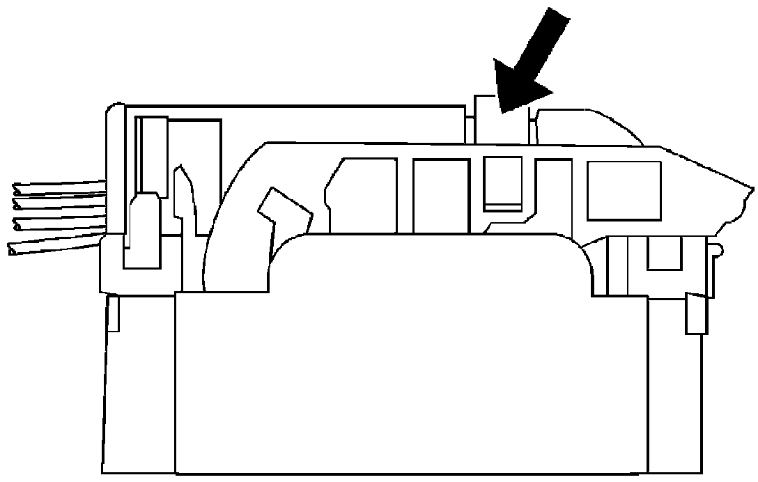 8. The illustration shows a cutaway view of the connector to aid the technician in releasing the terminal retainer.
