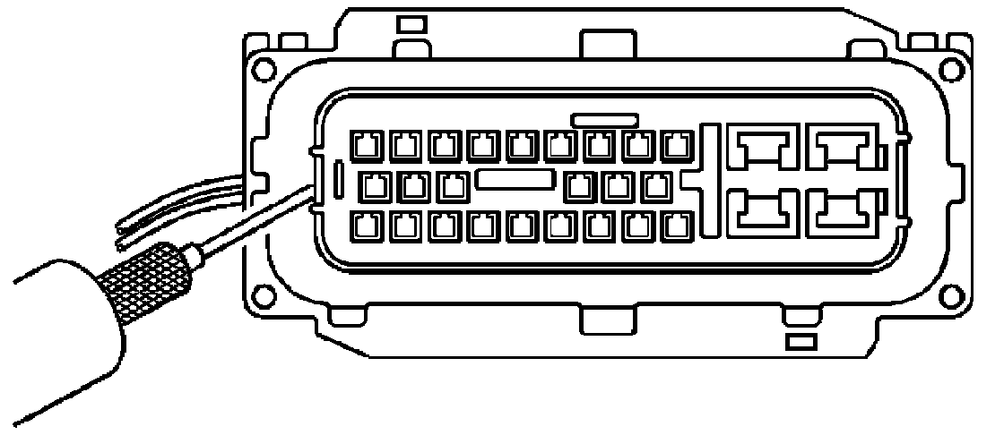 7. Insert the J-38125-553 (15315247) tool into the entry canal and pry up on the terminal retainer. The terminal retainer is a small plastic piece on the top of the terminal. The terminal retainer must be held up while the terminal is pulled out of the connector.