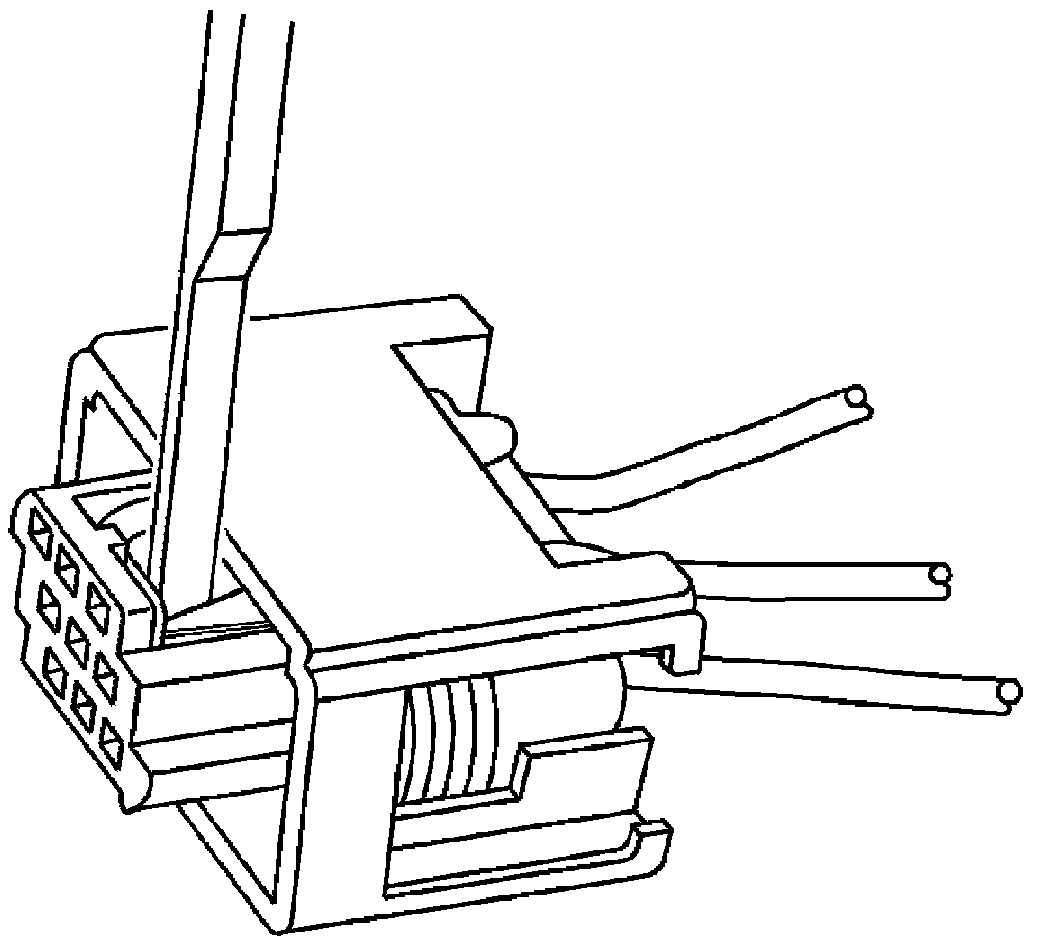 2. Insert the J 38125-11A (GM P/N 12094430) tool into the cavity on the lower right hand face of the connector until the terminal release tang access panel slides over.