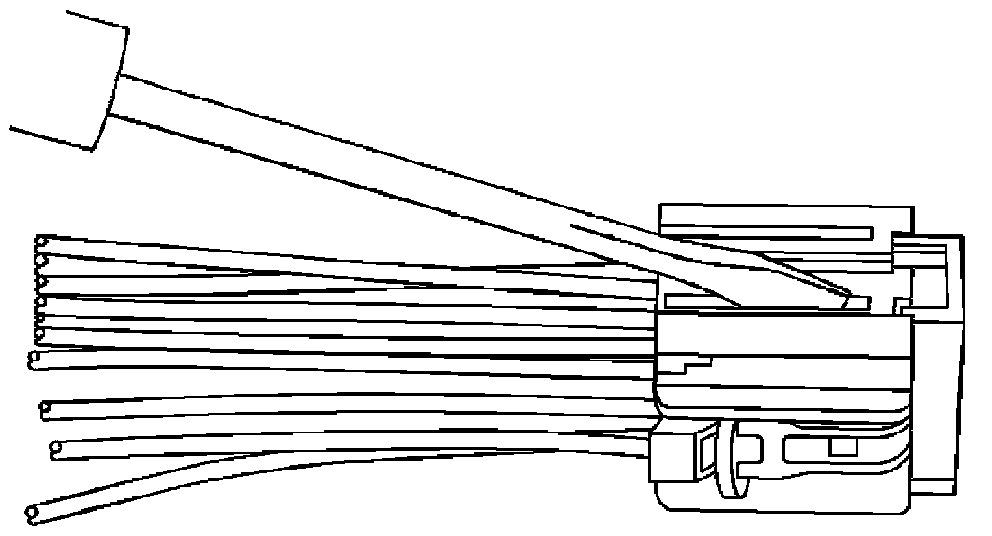 View of the male half of the connector with female terminals.