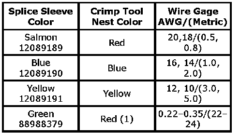 5. Select the proper duraseal splice sleeve (2) and the required crimp nest tool. Refer to the Crimp and Seal Splice Table.