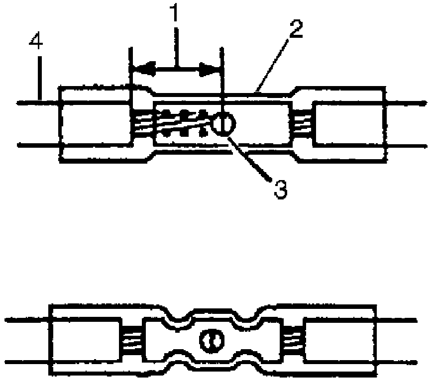 8. Insert the wires into the duraseal splice sleeve until the wire hits the barrel stop. The splice sleeve has a stop in the middle of the barrel in order to prevent the wire from passing through the splice (3).