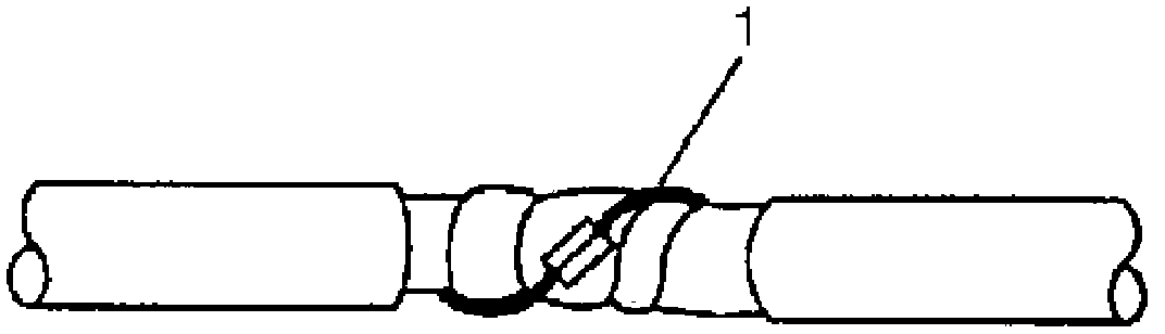 ^ Use caution not to wrap the drain wire in the tape (1).