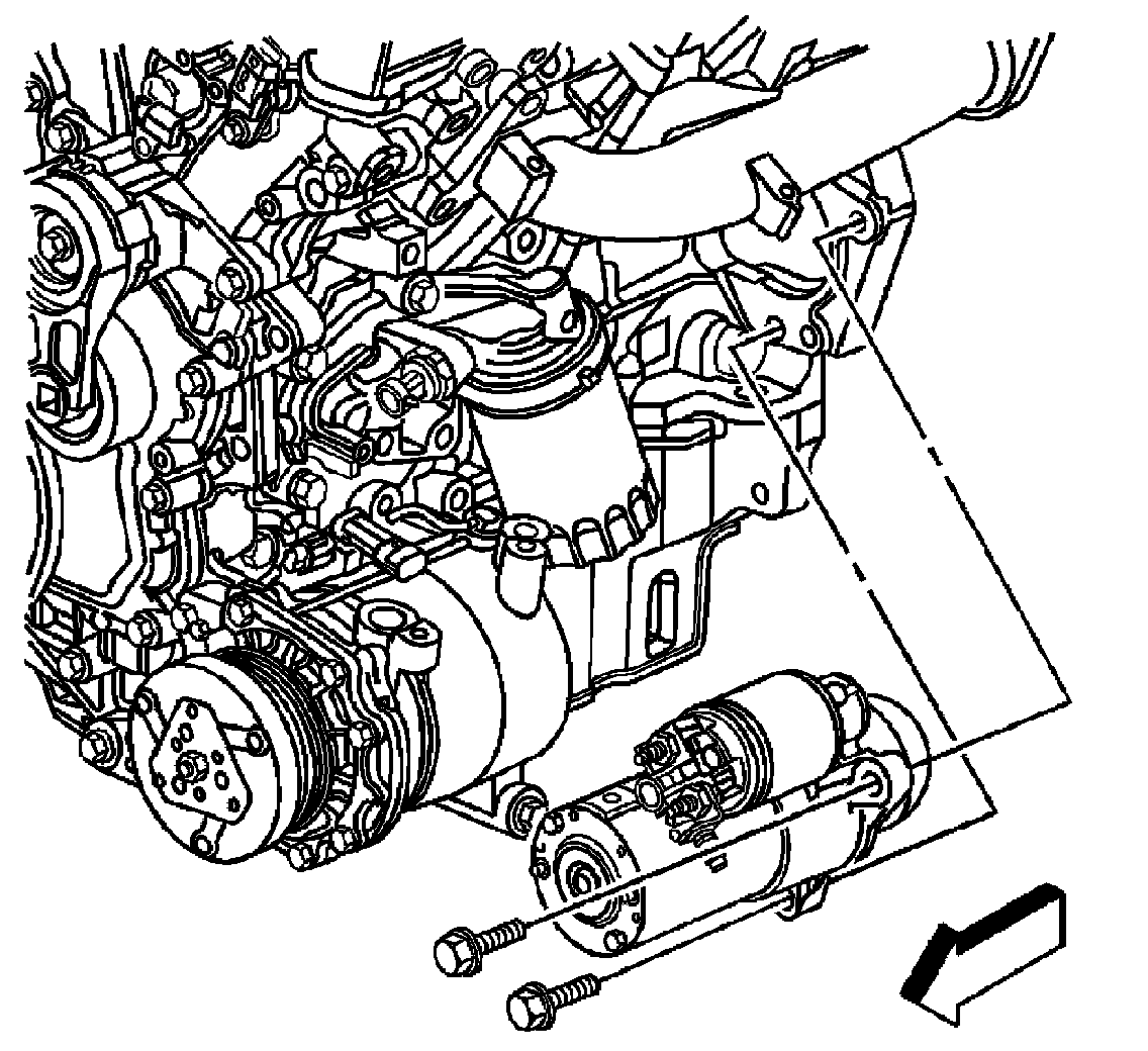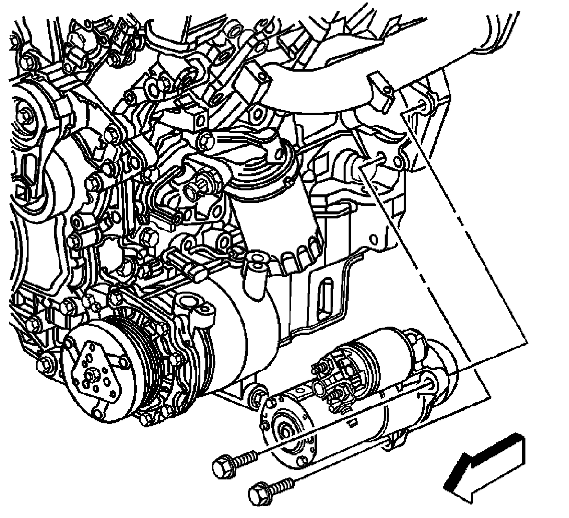 6. Remove the starter bolts and starter.
