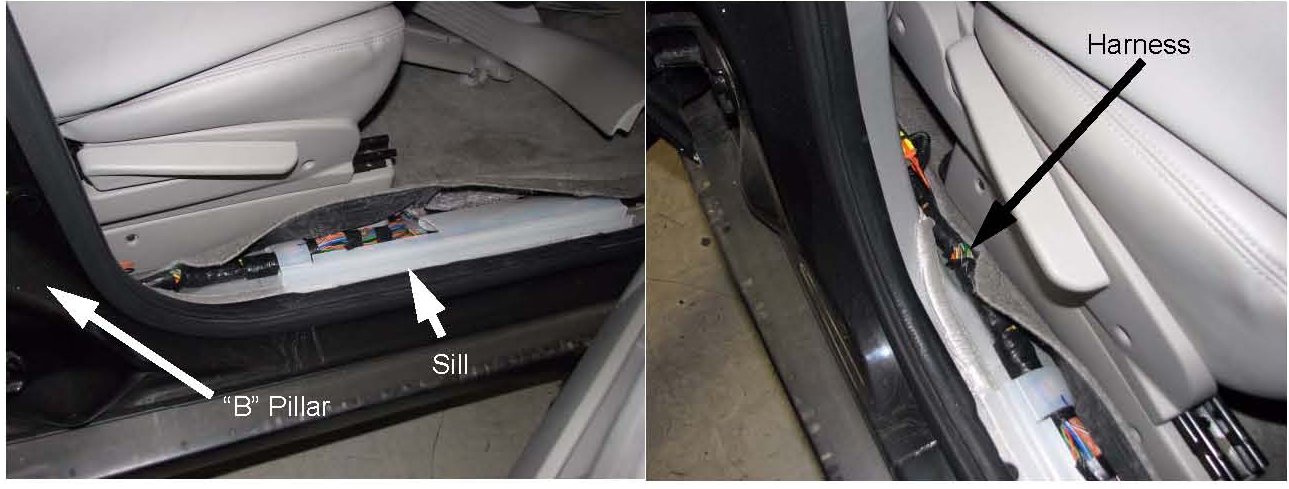 3. For DVD vehicles, the video module is supplied directly from the IP harness. This very long harness is manually clipped into the gutter on the left sill. It has a tendency to loop away from the "B" pillar and become trapped under the driver seat rear outboard attachment point. The codes B1288 (Video display) and B1289 (Video bright) are commonly found in these cases because the seat attachment tends to take out more than one circuit (esp. shielded circuits). When the pinch involves the RMT_ENABLE circuit, the conditions described in 1 above occur.