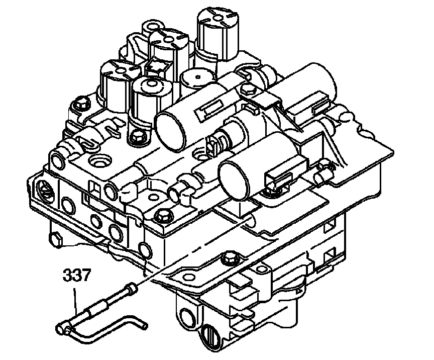 3. Remove the TCC lock up pressure control solenoid valve assembly (339).