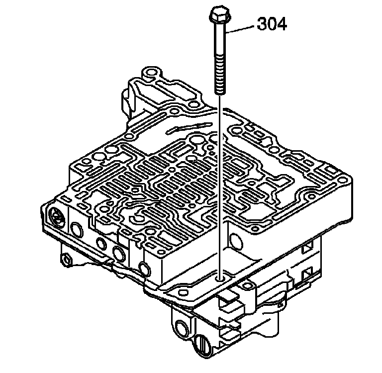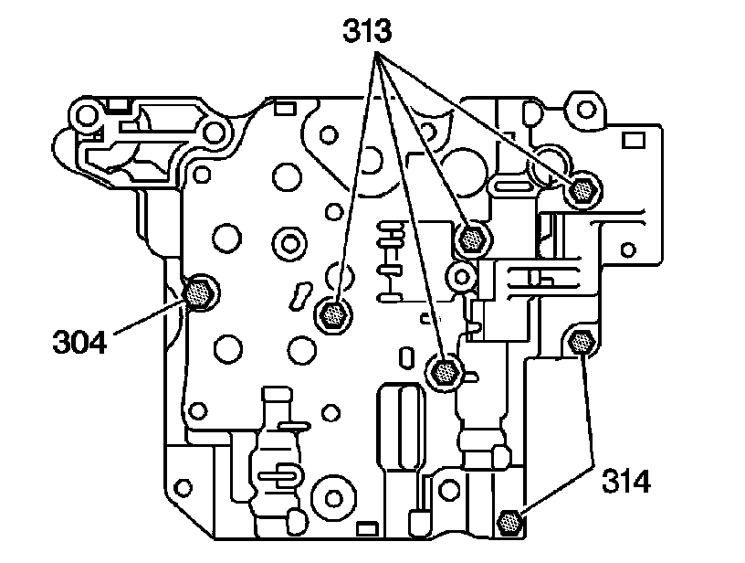 8. Remove the 7 front control valve body bolts (1-304, 4-313, 2-314).