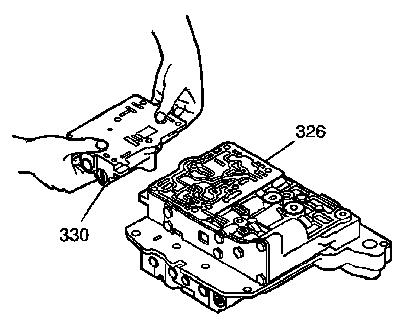 14. Remove the No. 2 rear control valve body assembly (330), the spacer plate and the gaskets as an assembly from the rear control valve body assembly (326).