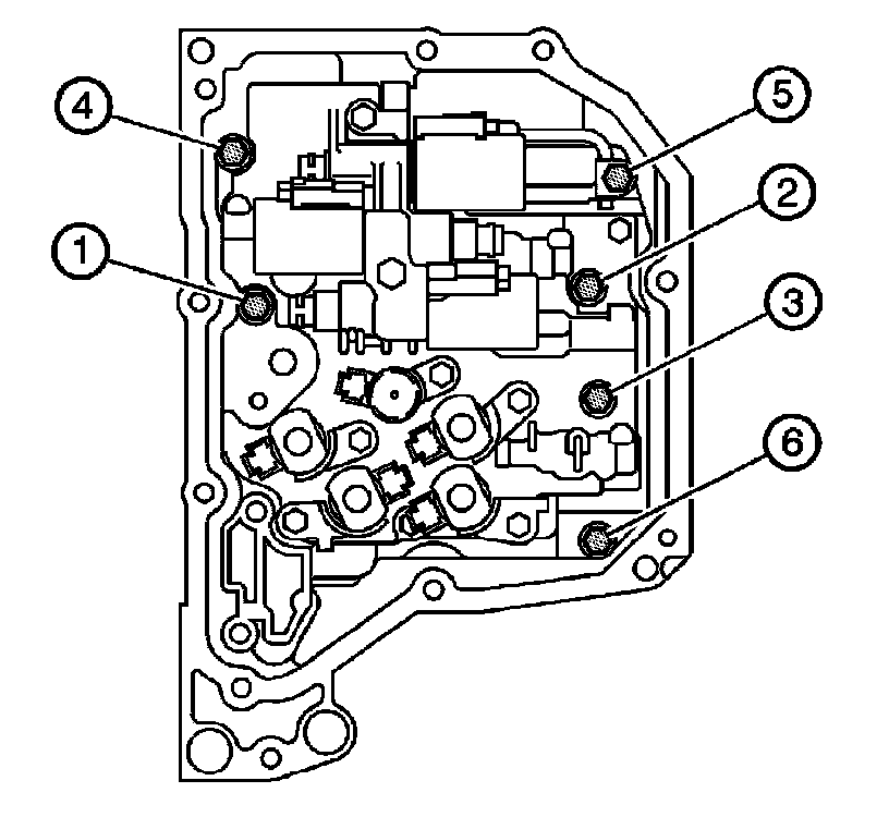 5. Install the 6 control valve body assembly to transmission case bolts and hand tighten.