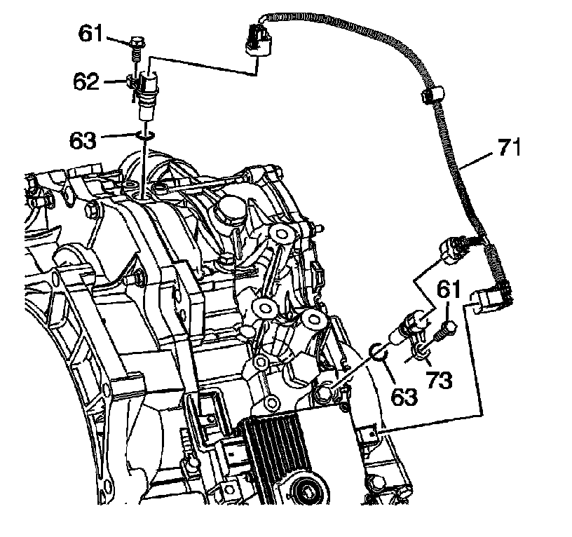 4. Connect the input and output speed sensor harness assembly (71) to the speed sensors and the TCM.