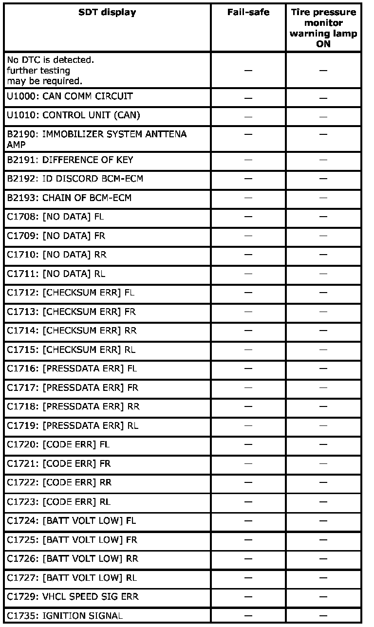 - 1 - 39: Displayed if any previous malfunction is present when current condition is normal. It increases like 1 -> 2 -> 3...38 -> 39 after returning to the normal condition whenever ignition switch OFF -> ON. The counter remains at 39 even if the number of cycles exceeds it. It is counted from 1 again when turning ignition switch OFF -> ON after returning to the normal condition if the malfunction is detected again.