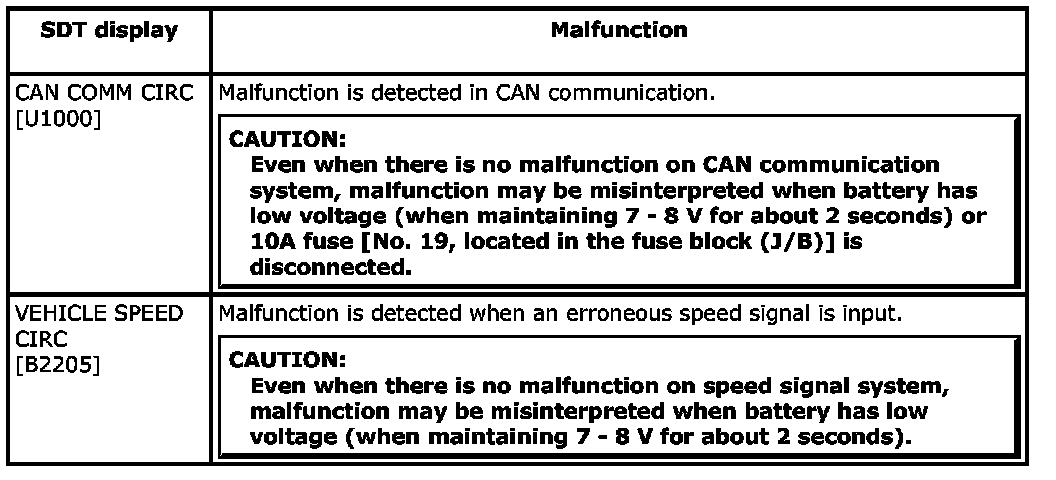 - 1-63: Indicates that a malfunction was detected in the past. (Displays number of ignition switch OFF -> ON cycles after malfunction is detected. Self-diagnosis result is erased when "63"is exceeded.)