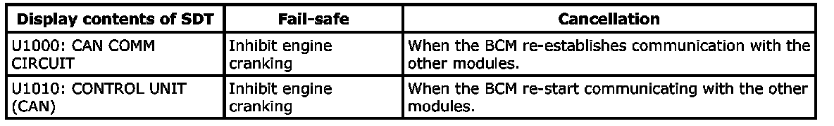 Fail Safe: BCMFail-safe indexBCM performs fail-safe control when any DTC listed below is detected.