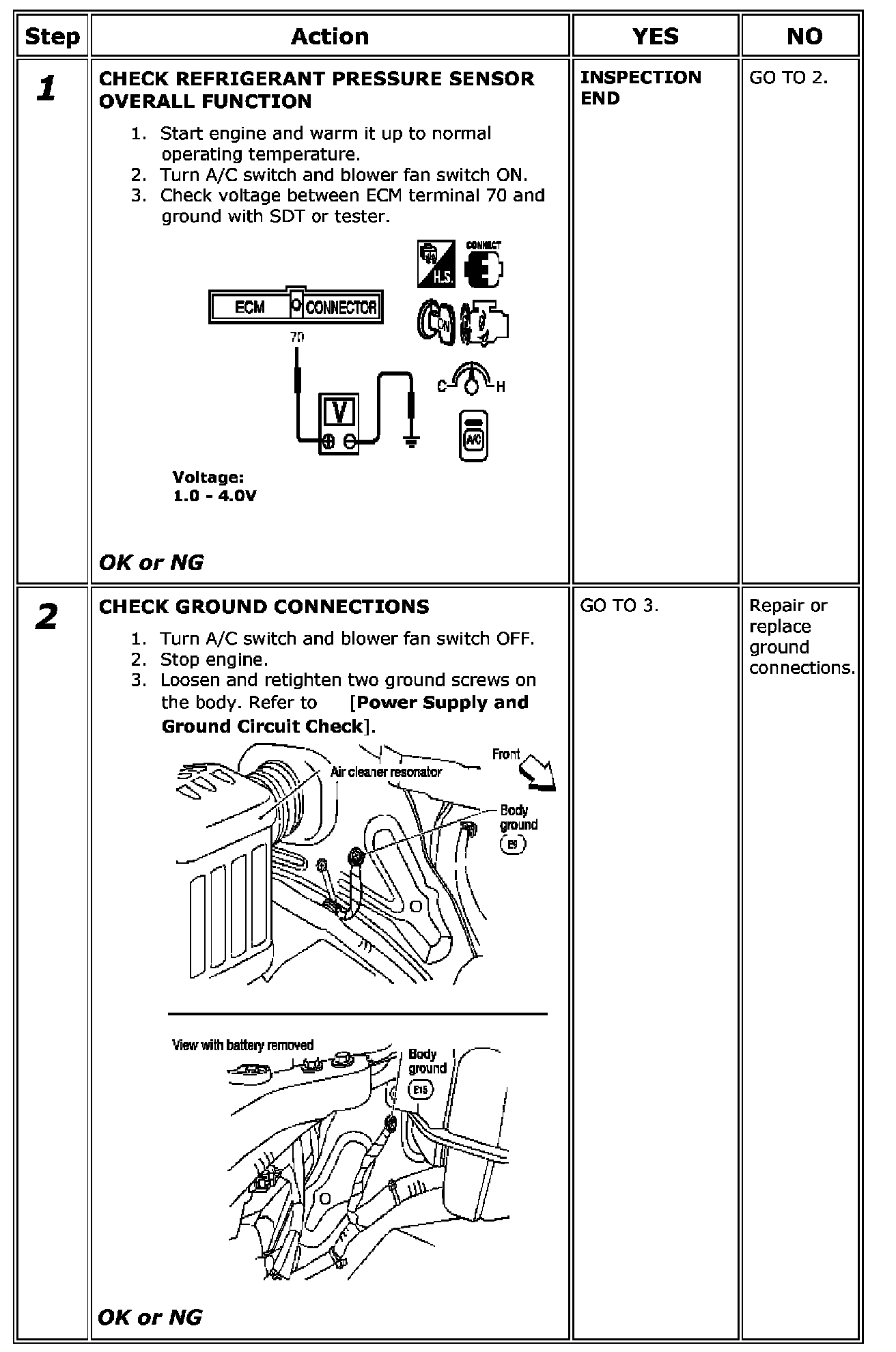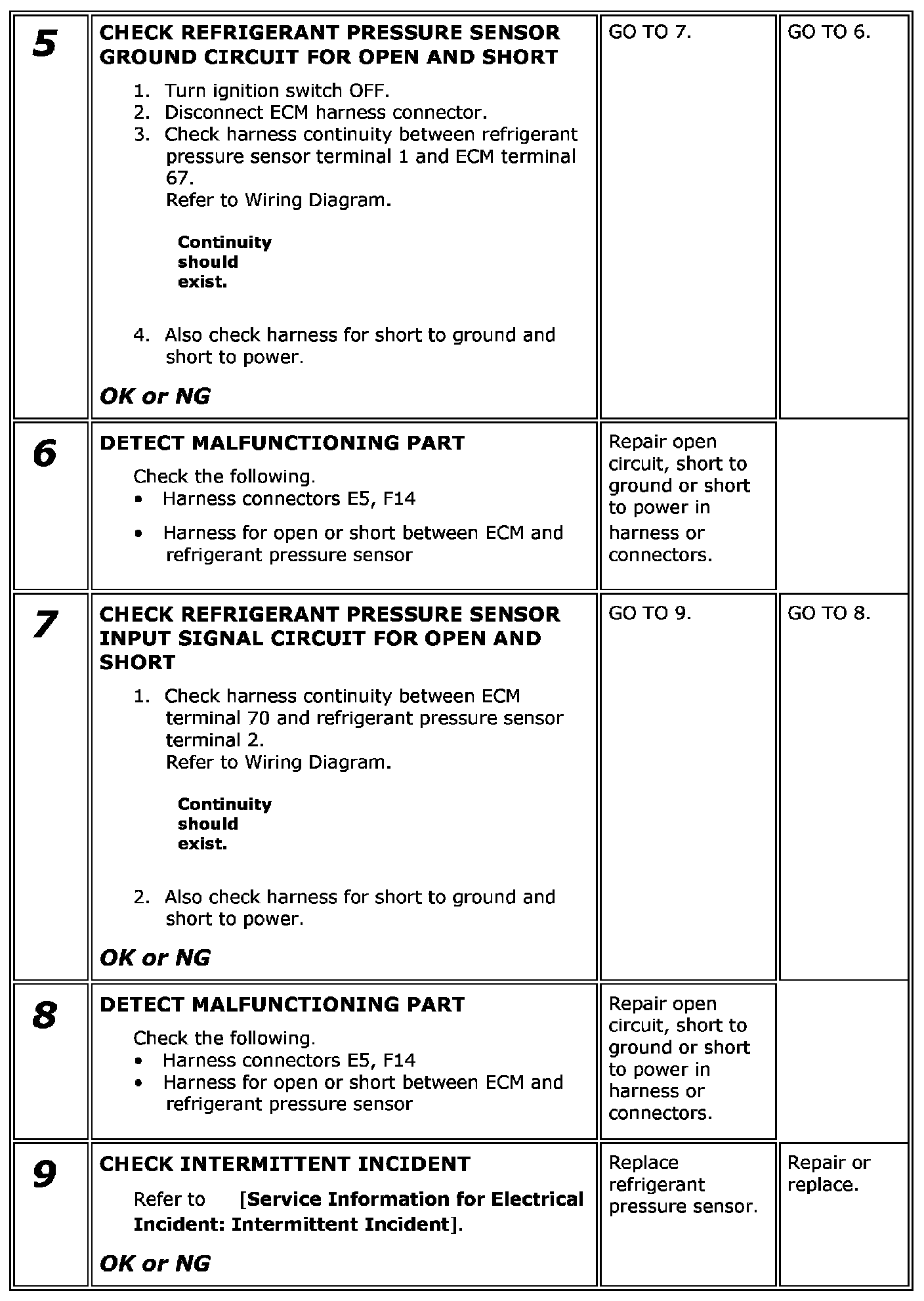 Refrigerant Pressure Sensor / Switch: Testing and Inspection