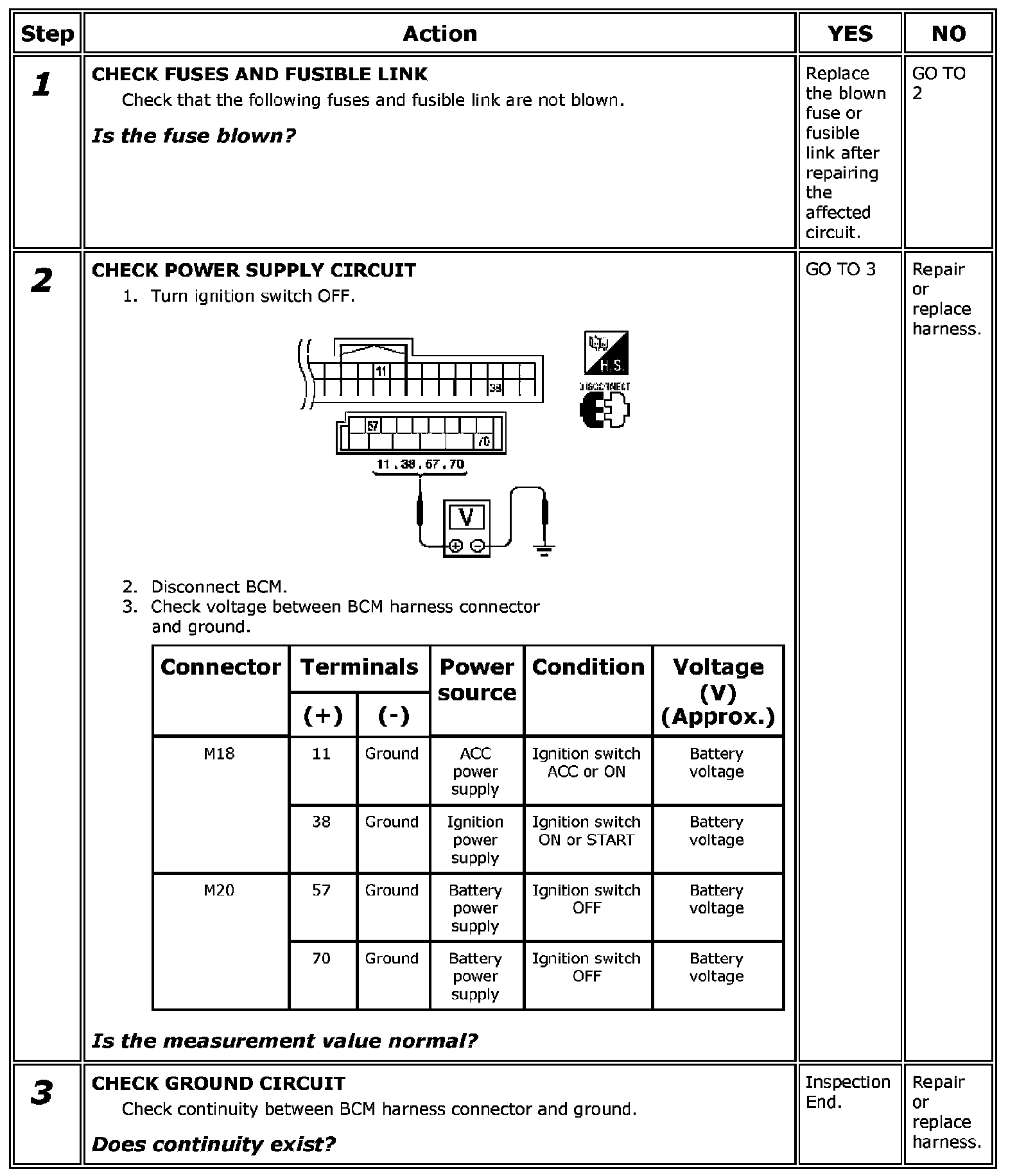 Power Supply and Ground Circuit Check [BCM]