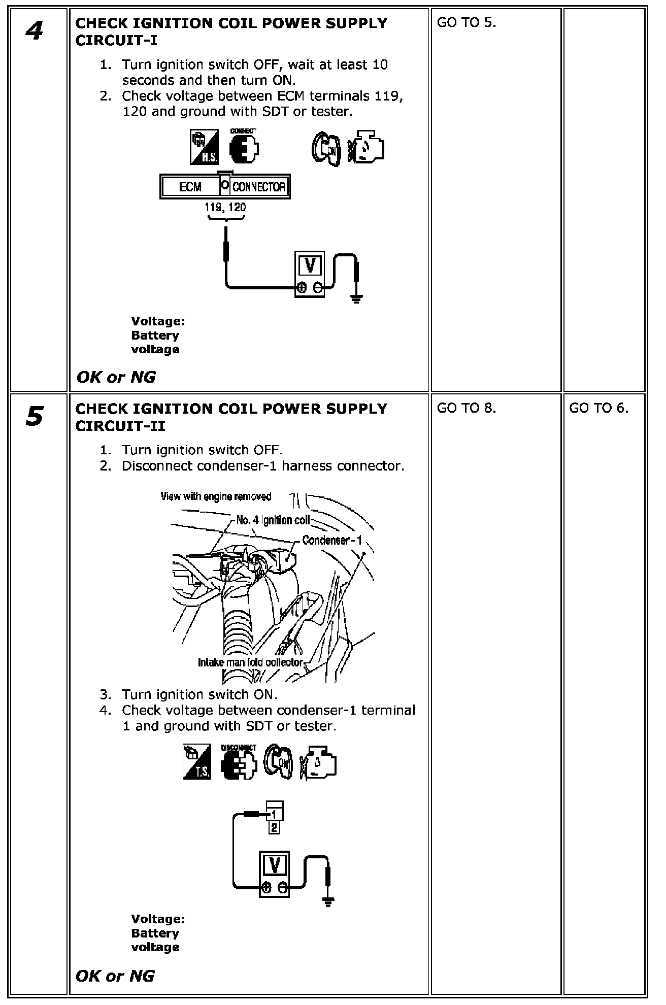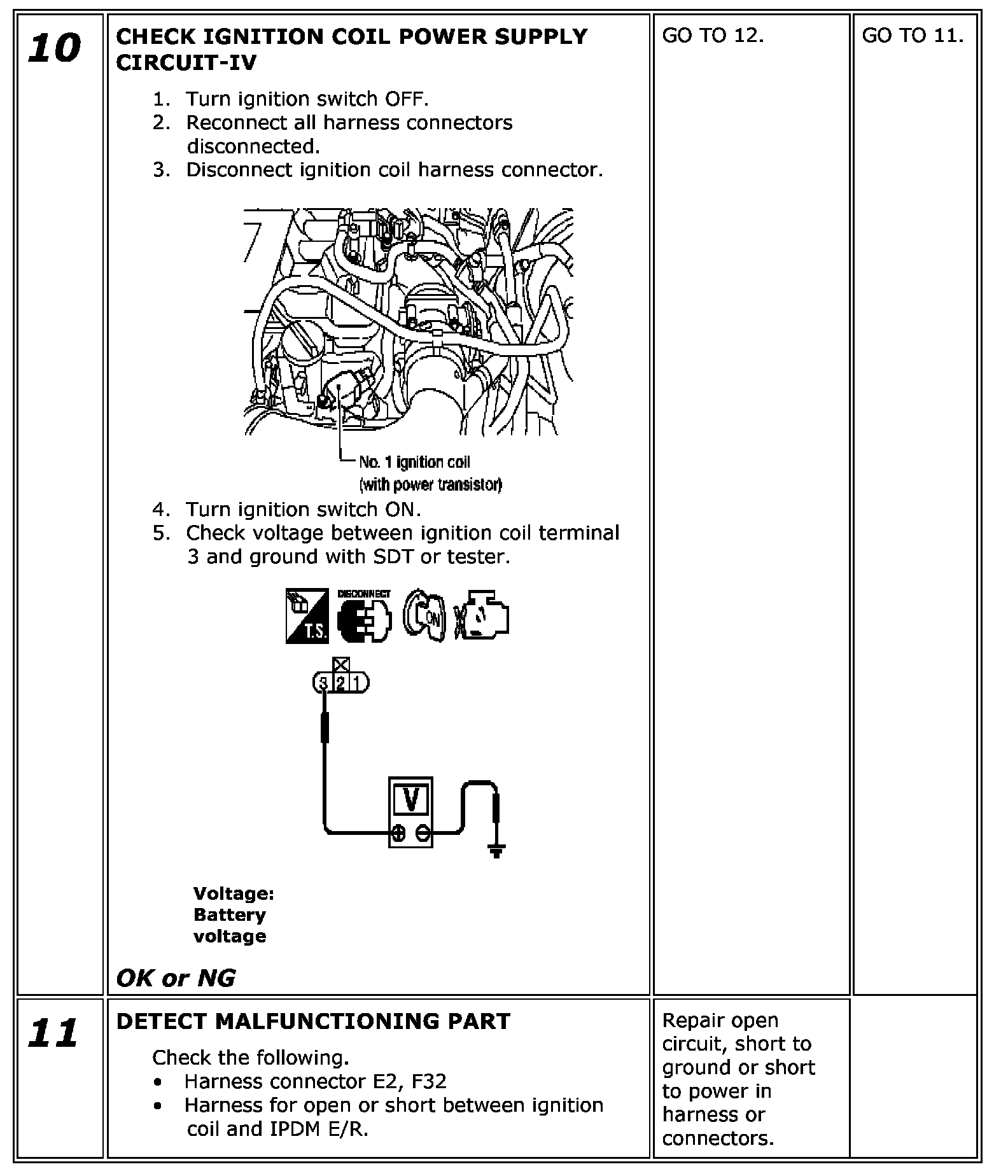 4. If NG, Replace ignition coil with power transistor.