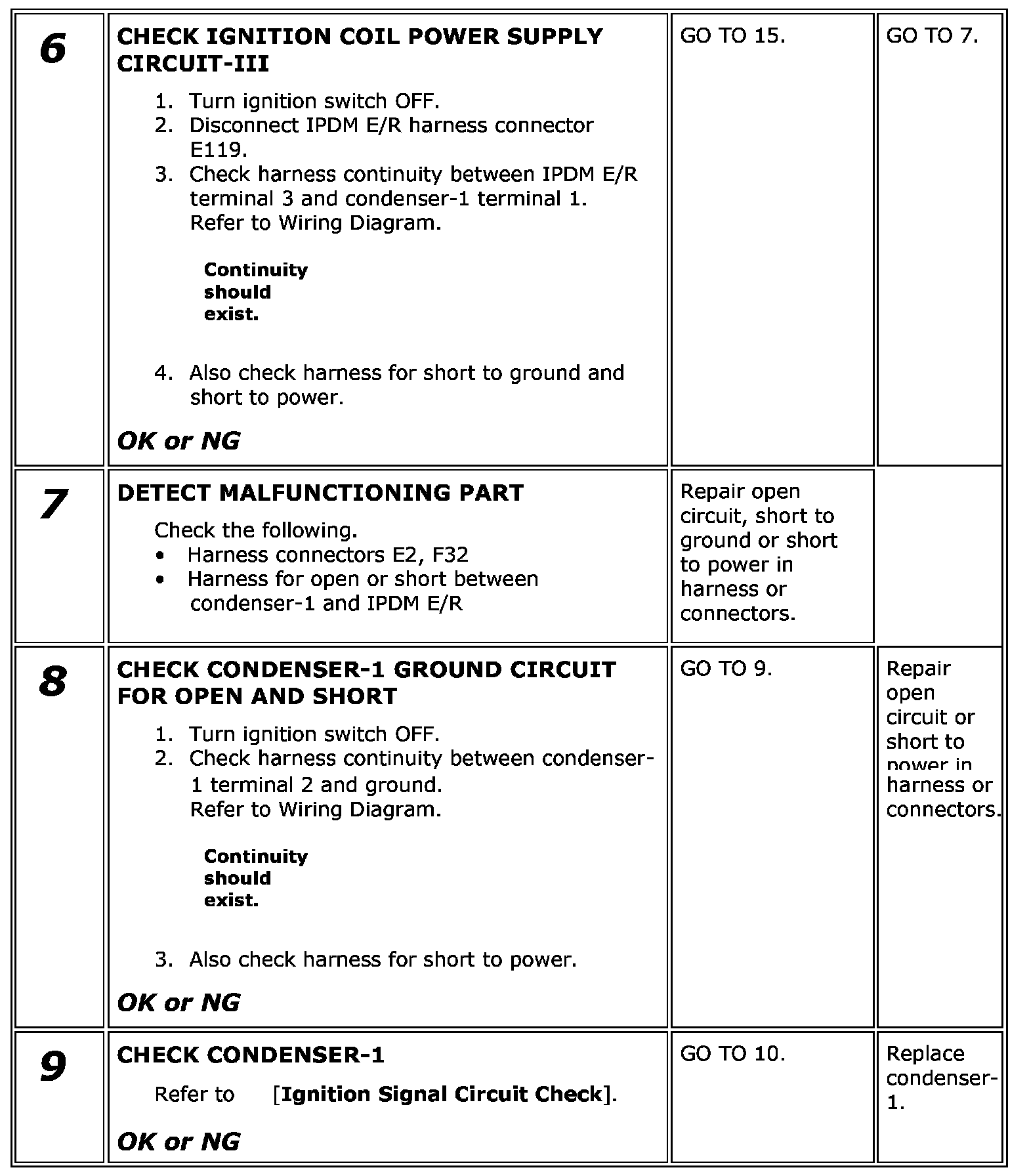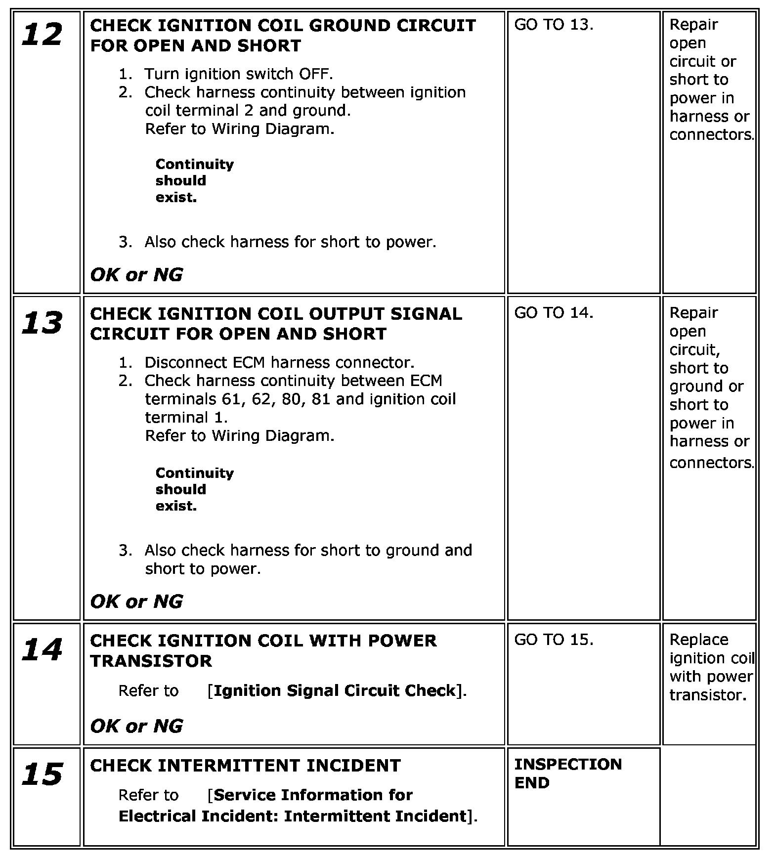 17. If NG, Replace ignition coil with power transistor.