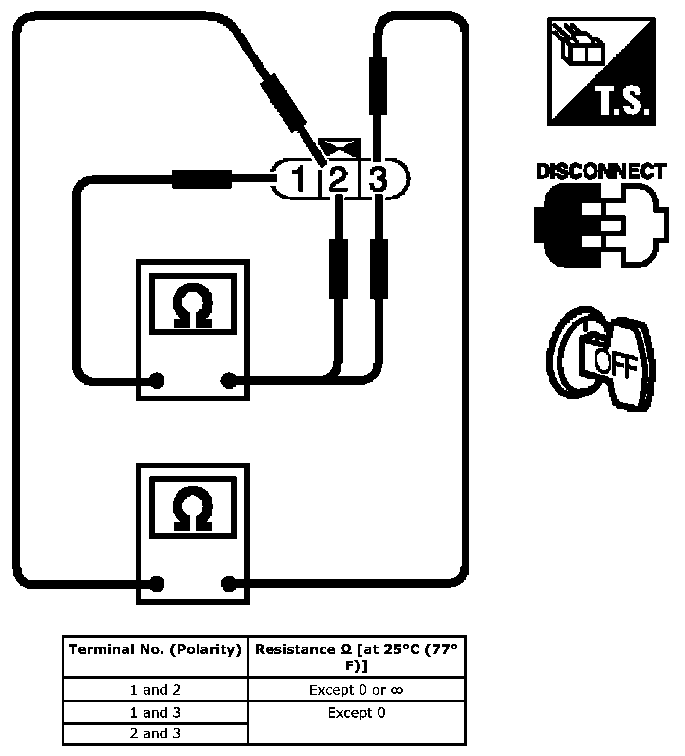 3. Check resistance between ignition coil terminals as follows.