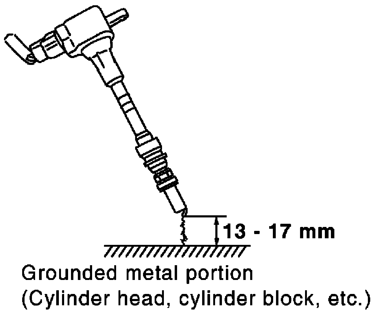 15. Fix ignition coil using a rope etc.with gap of 13 - 17 mm between the edge of the spark plug and grounded metal portion as shown in the figure.