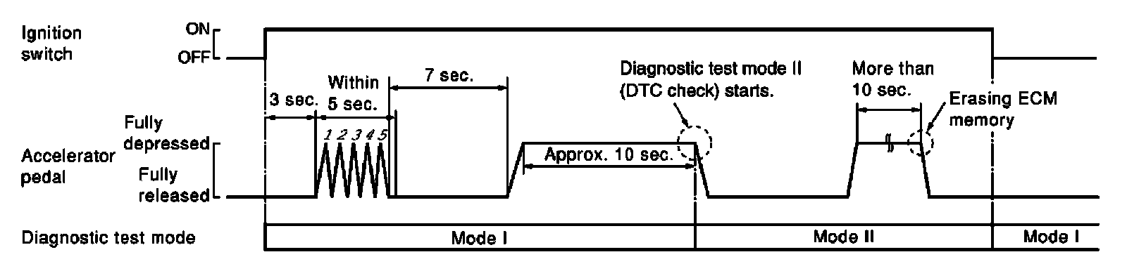 The DTC can be erased from the back-up memory in the ECM by depressing accelerator pedal. Refer to "How to Erase Diagnostic Test Mode II (Self-diagnostic Results)".