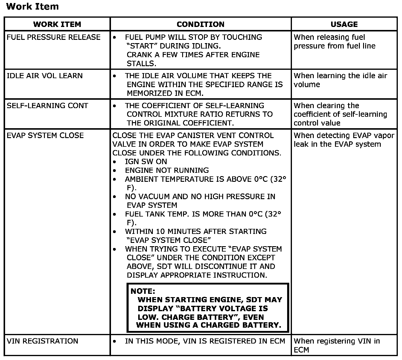 Utility ModeWork ItemUtility ModeReadiness Test ModeFor details, refer to [DTC Index: ECM].