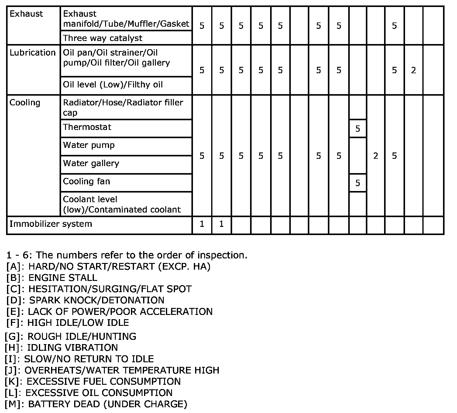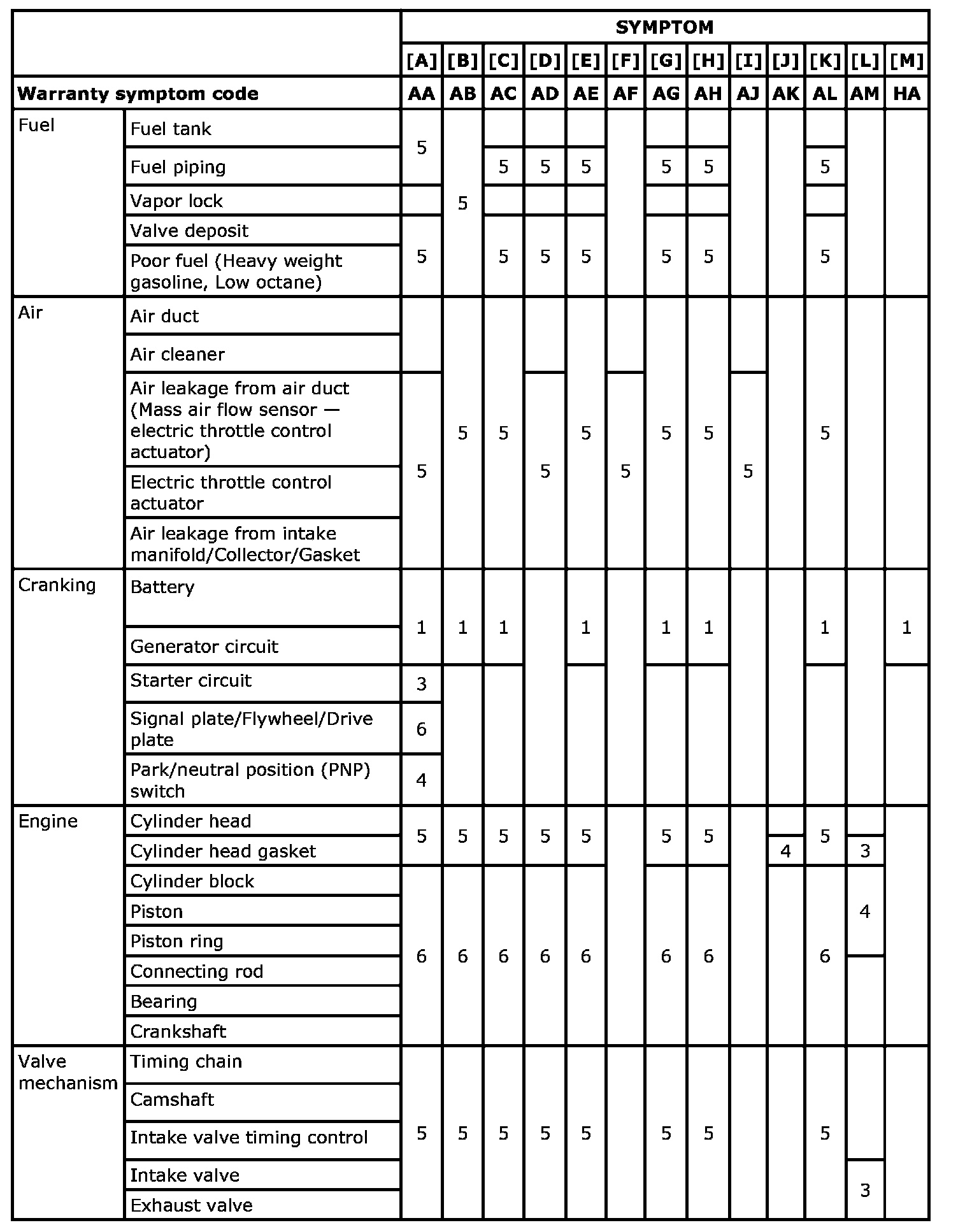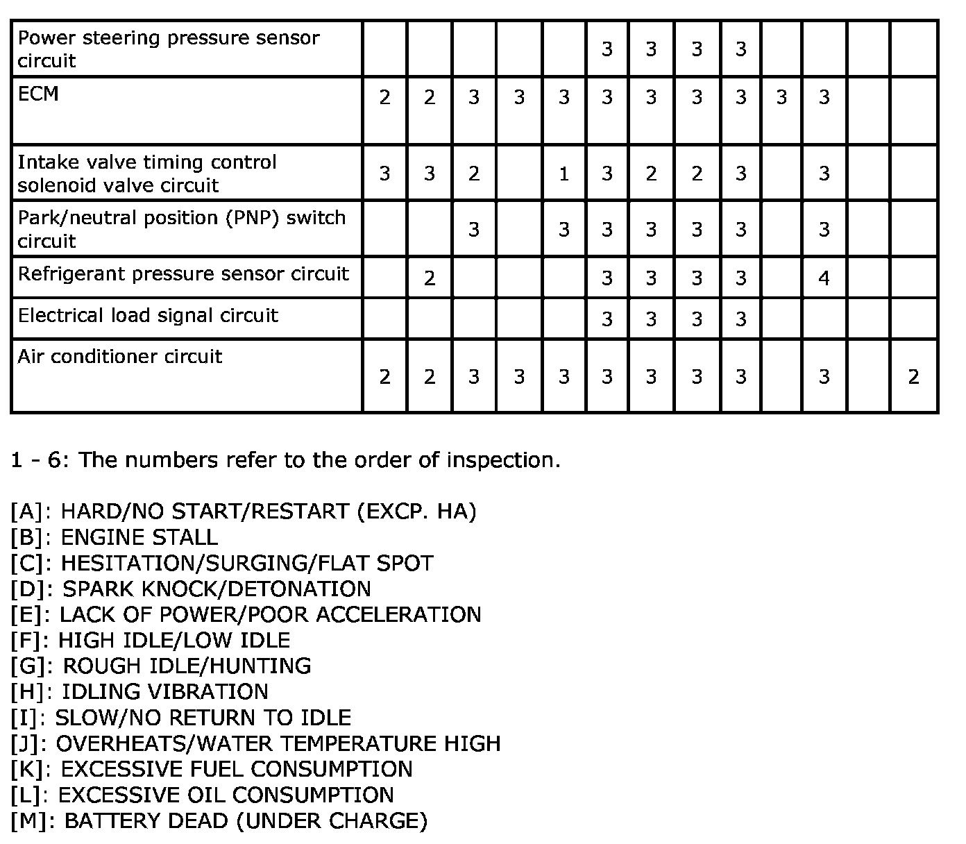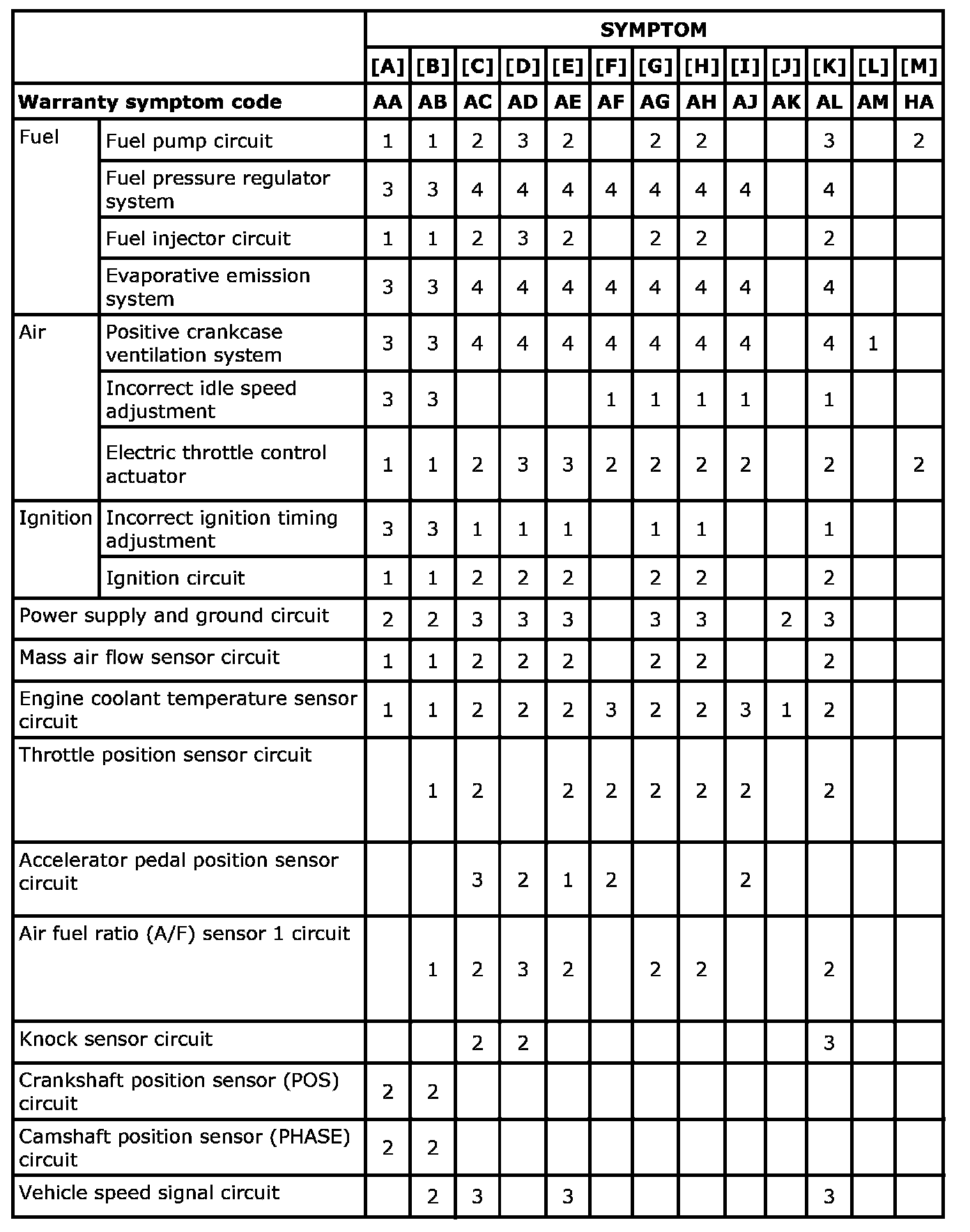 Engine Control System Symptoms: Symptom Matrix Chart