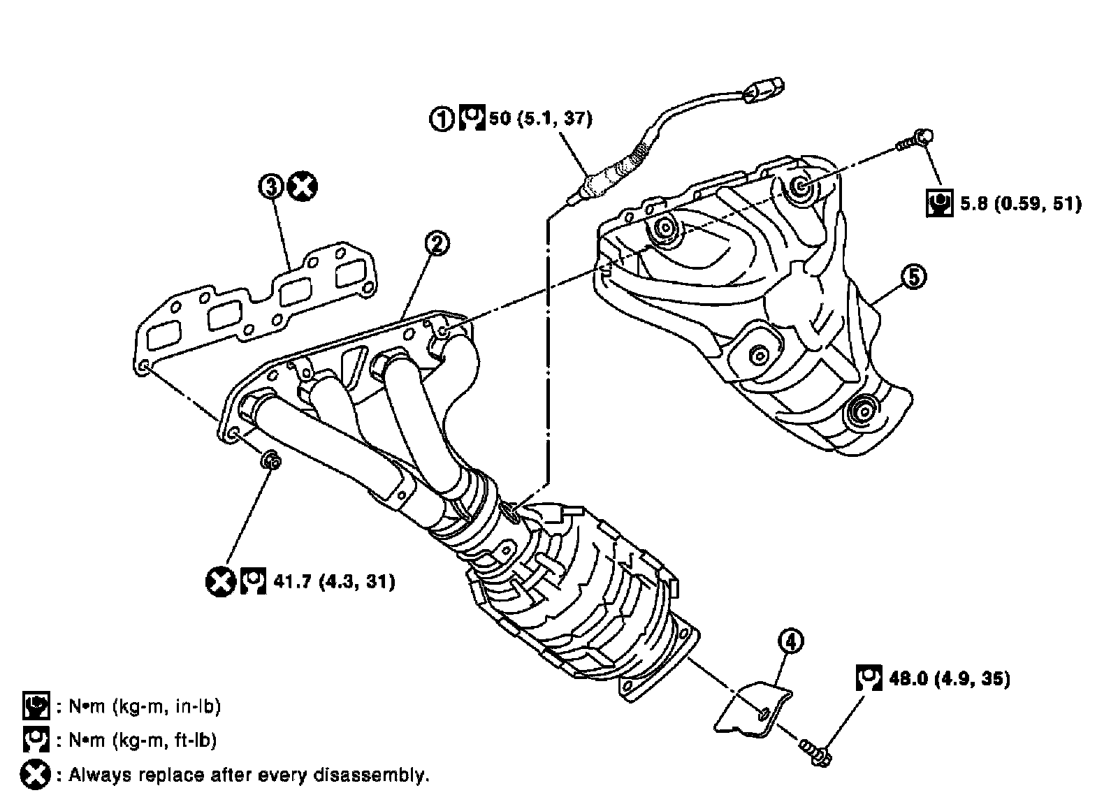 Exhaust Manifold and Three Way Catalyst: Exploded View [QR25DE]