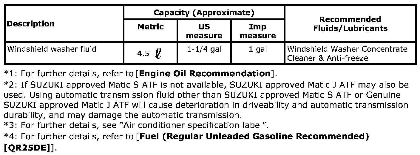 Recommended Fluids and Lubricants