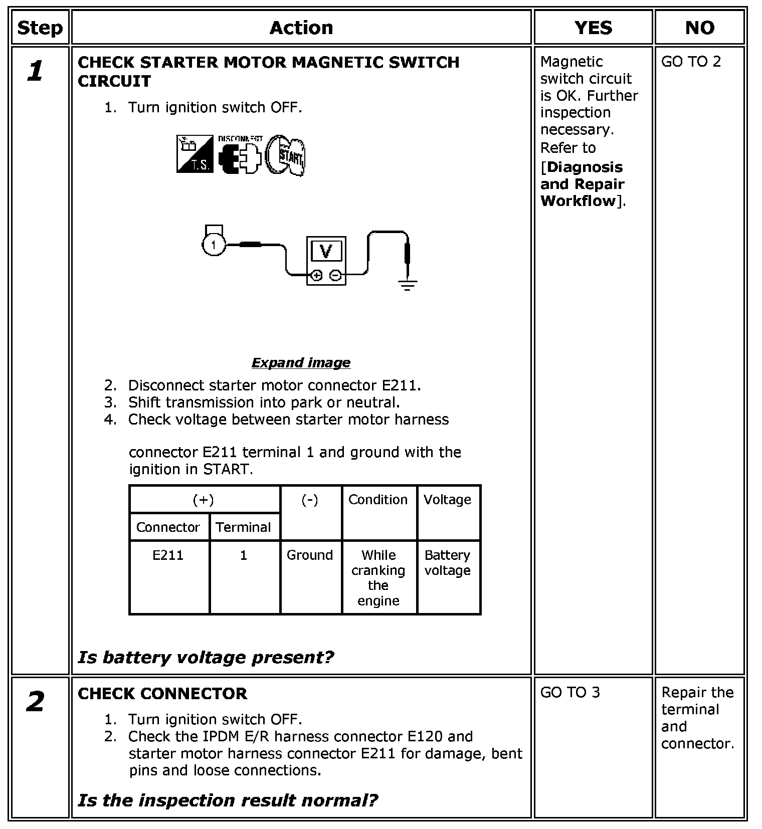 CAUTION: Perform diagnosis under the condition that engine cannot start by the following procedure.