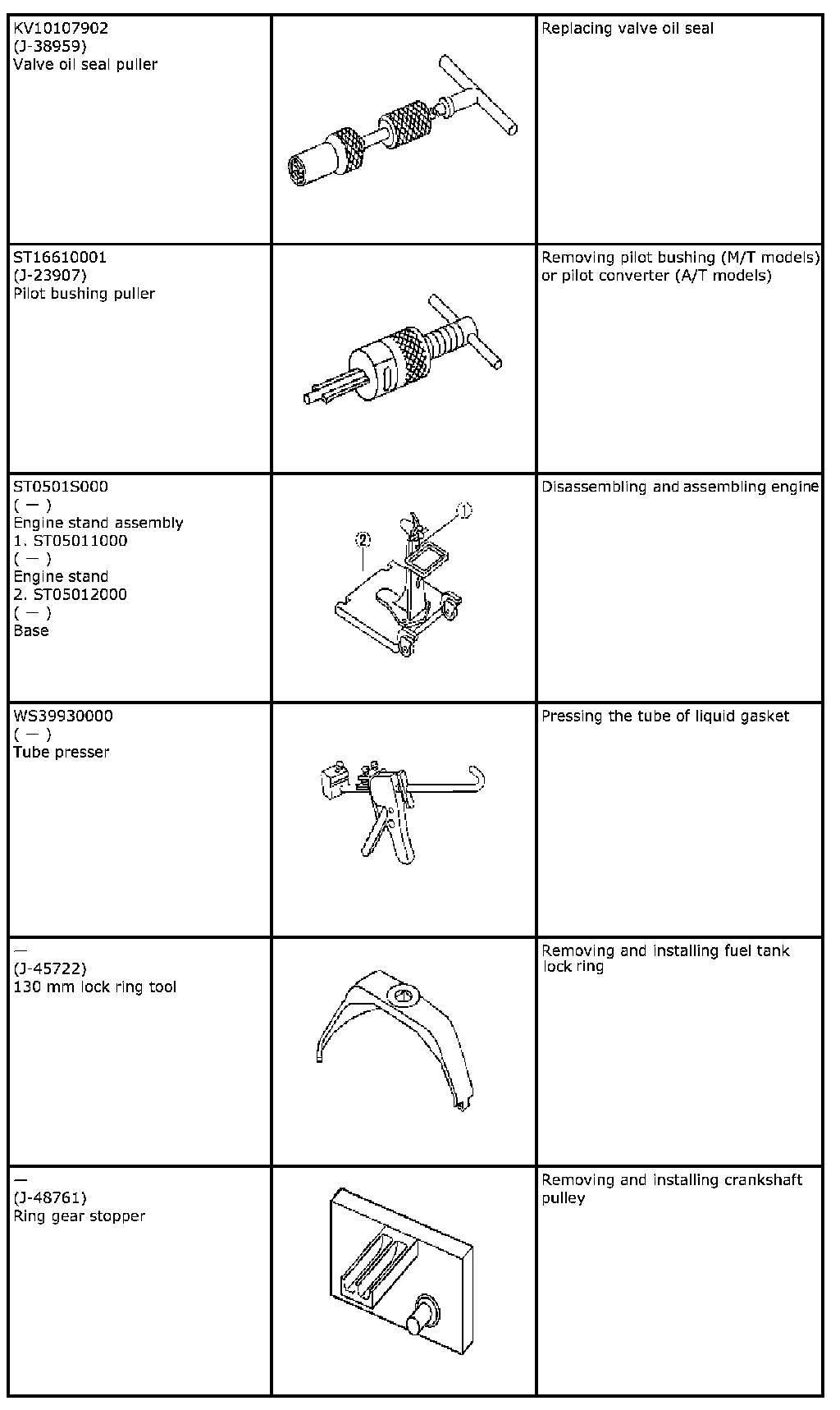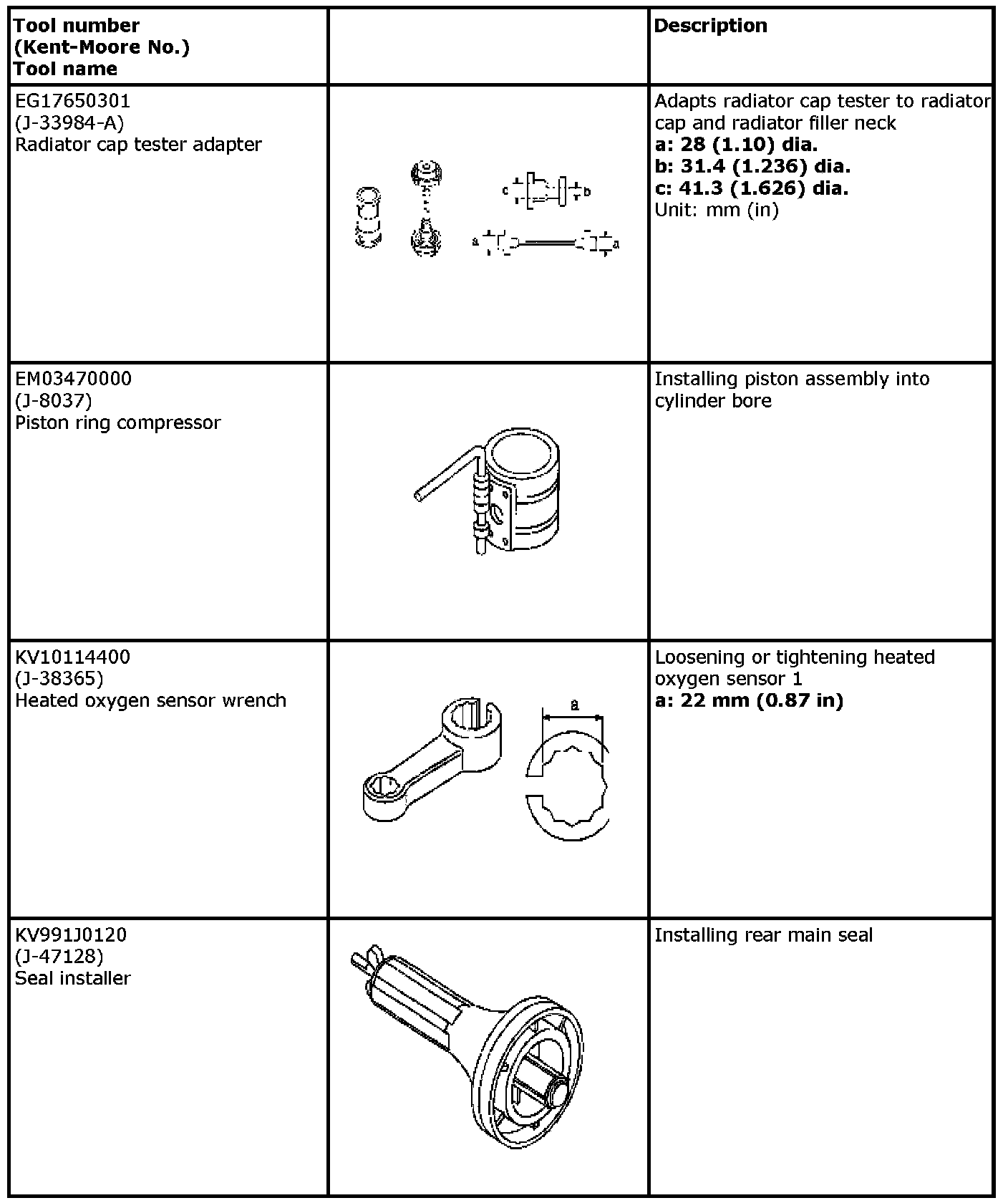 Special Service ToolThe actual shapes of Kent-Moore tools may differ from those of special service tools illustrated here.