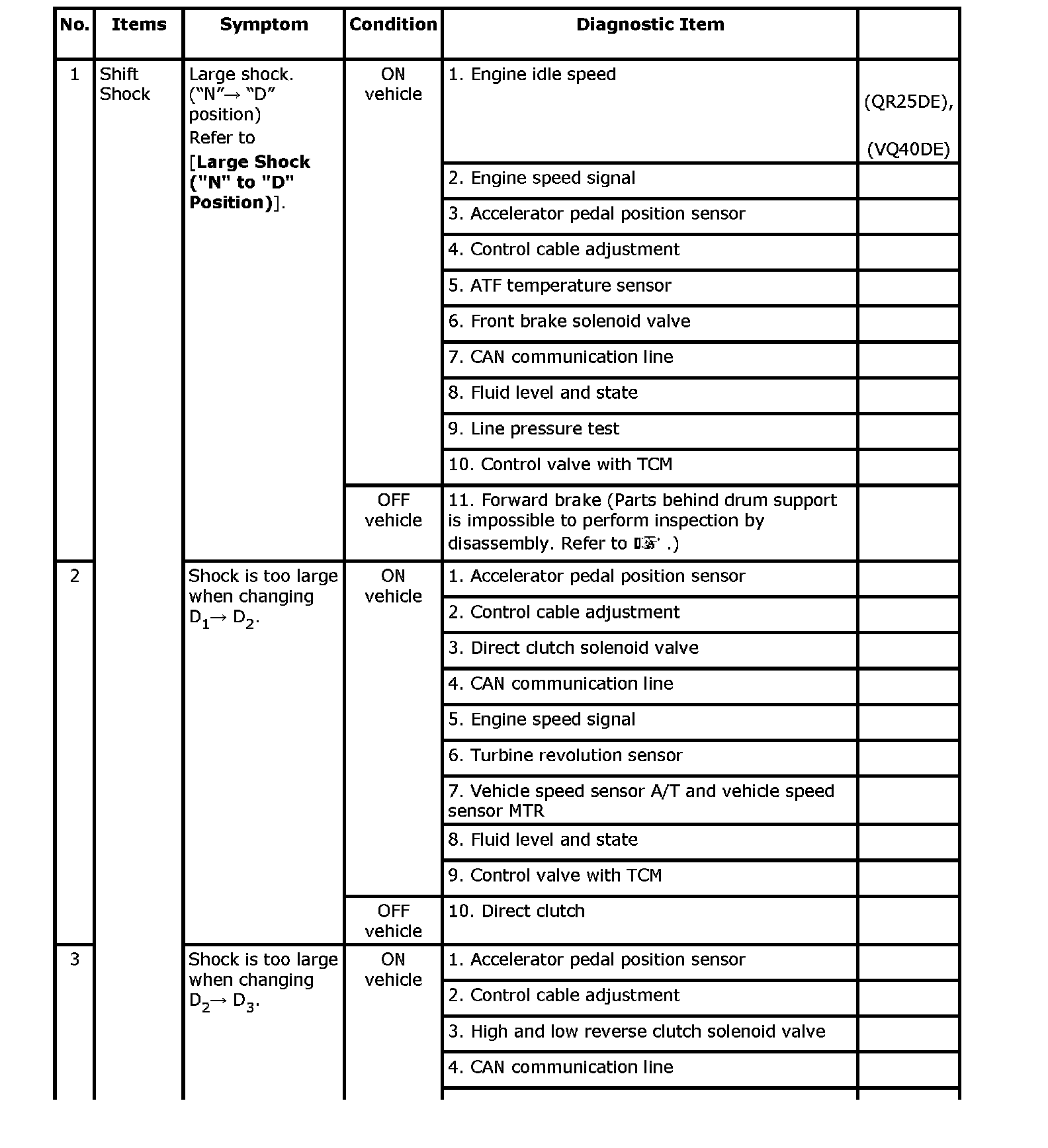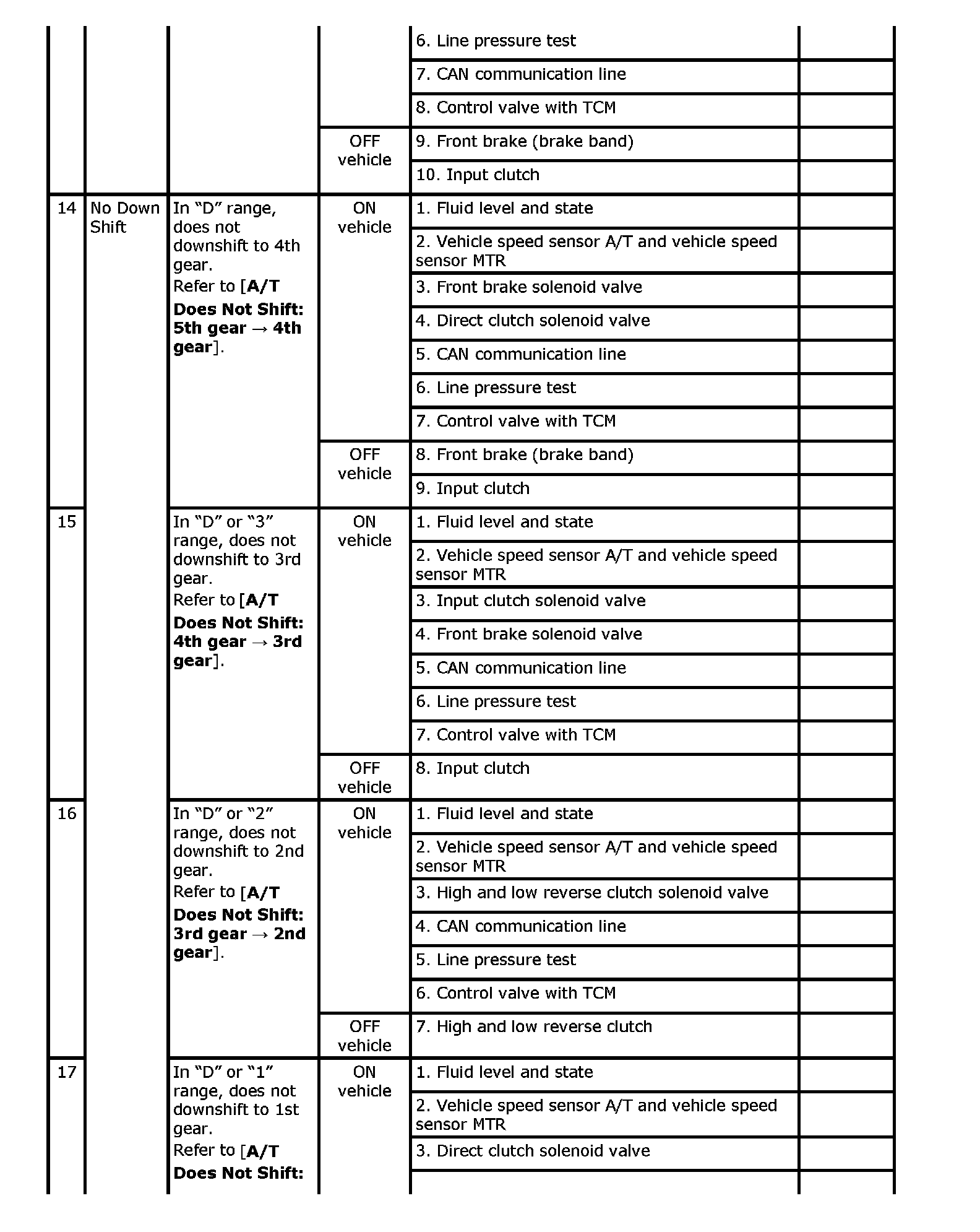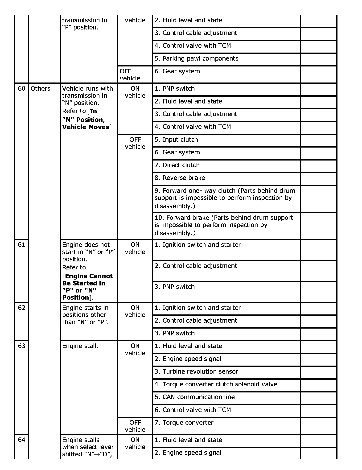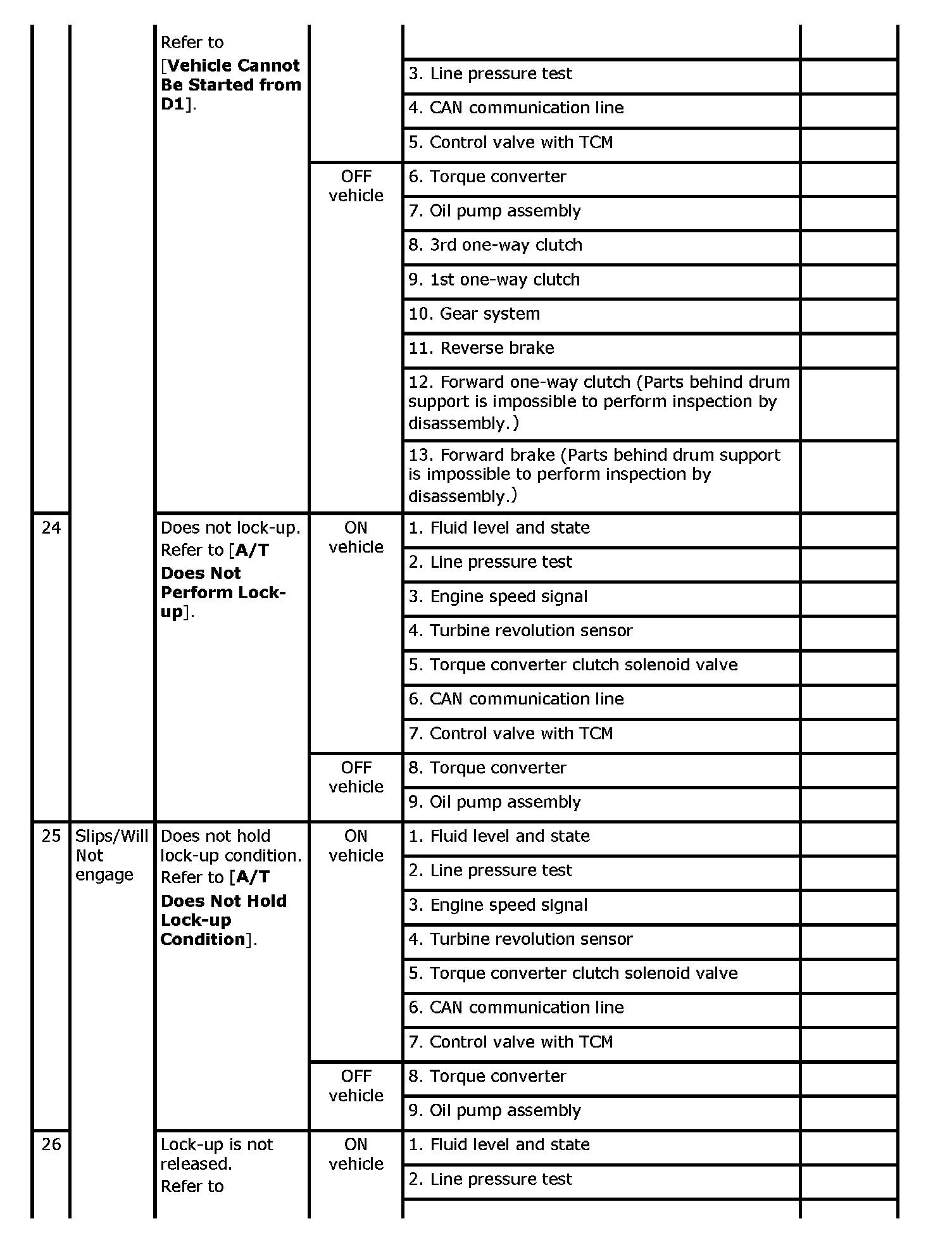 Overhaul and inspect inside the A/T only if A/T fluid condition is NG.