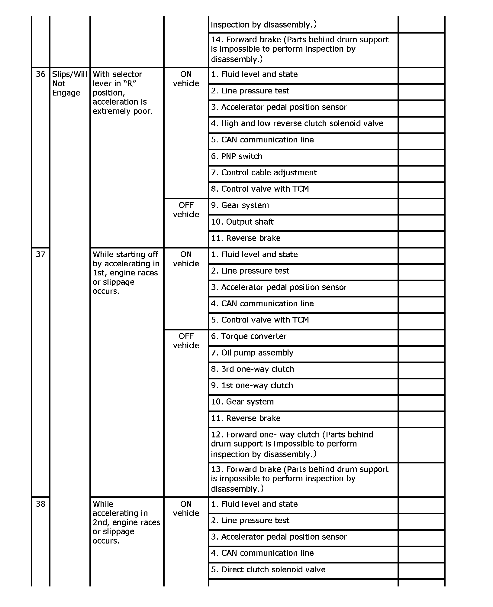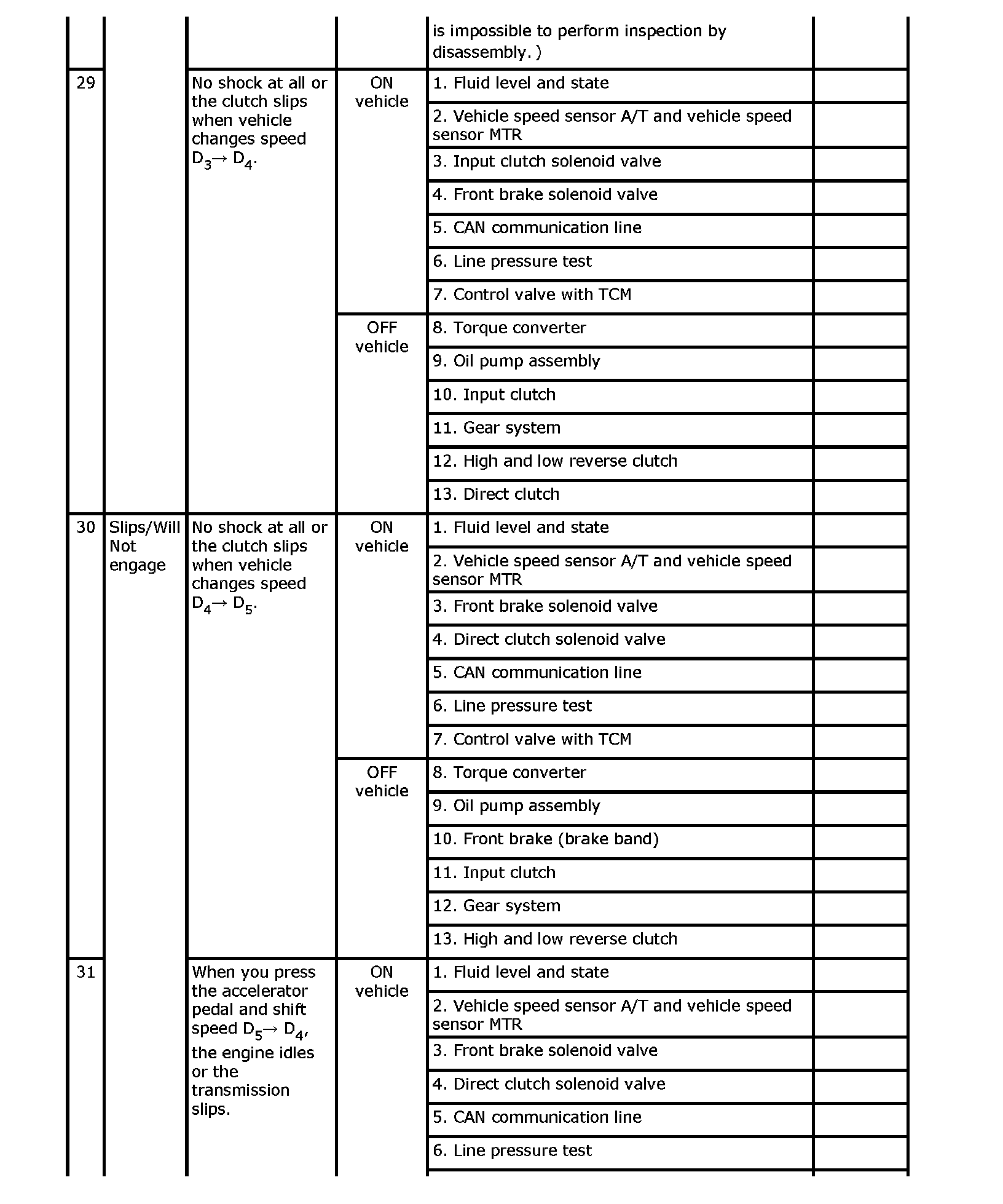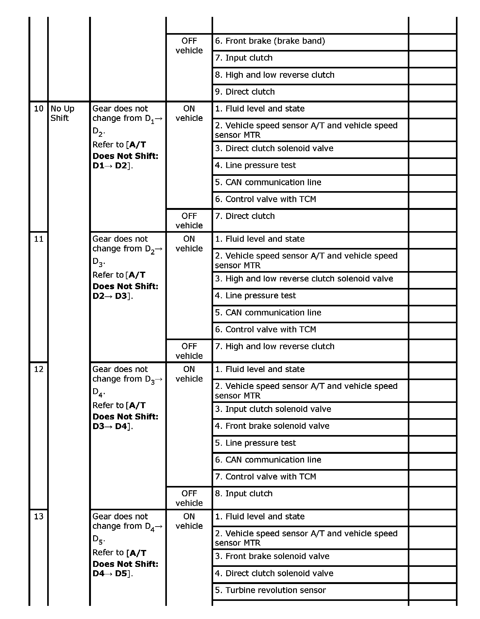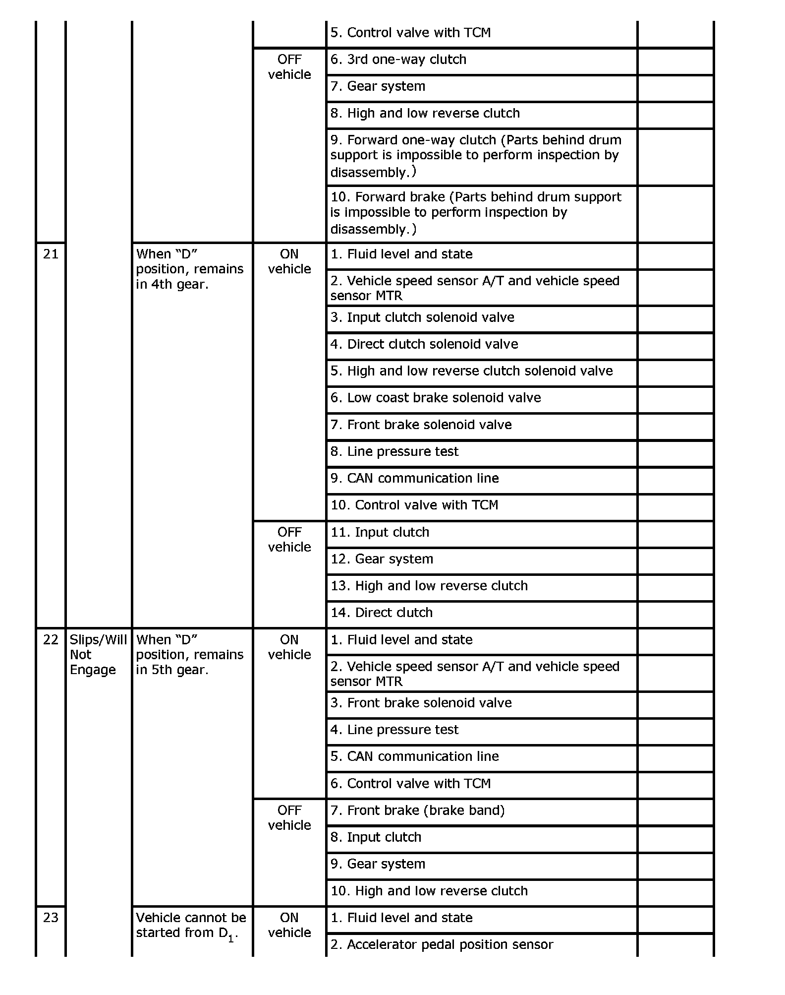 Overhaul and inspect inside the A/T only if A/T fluid condition is NG.