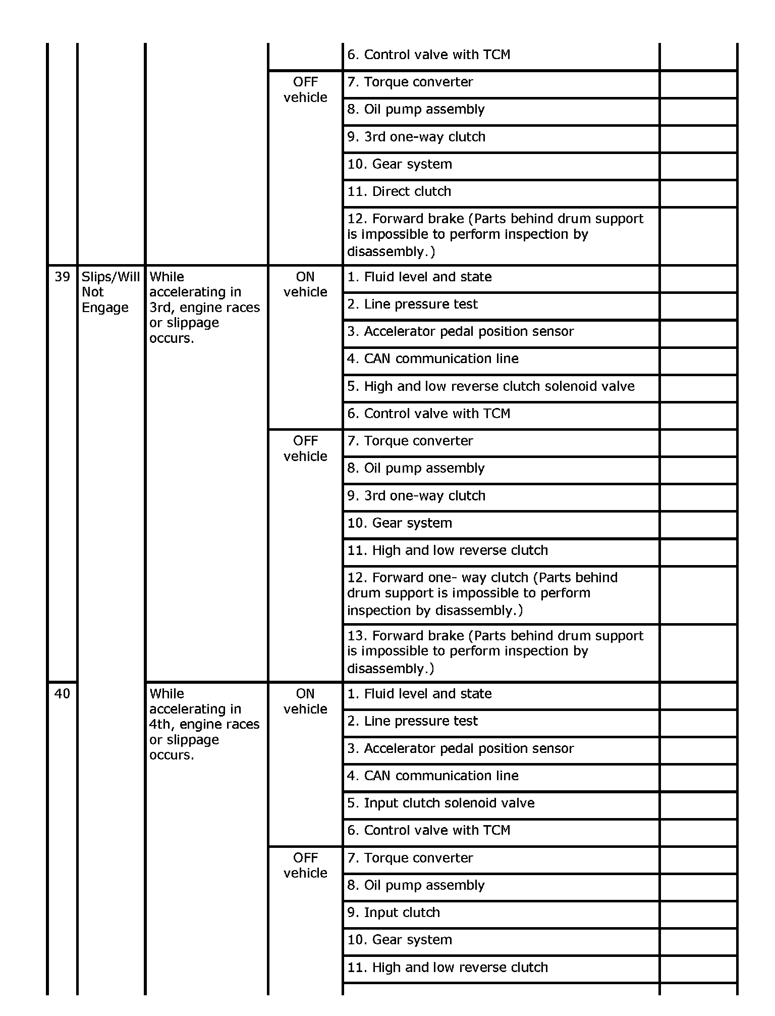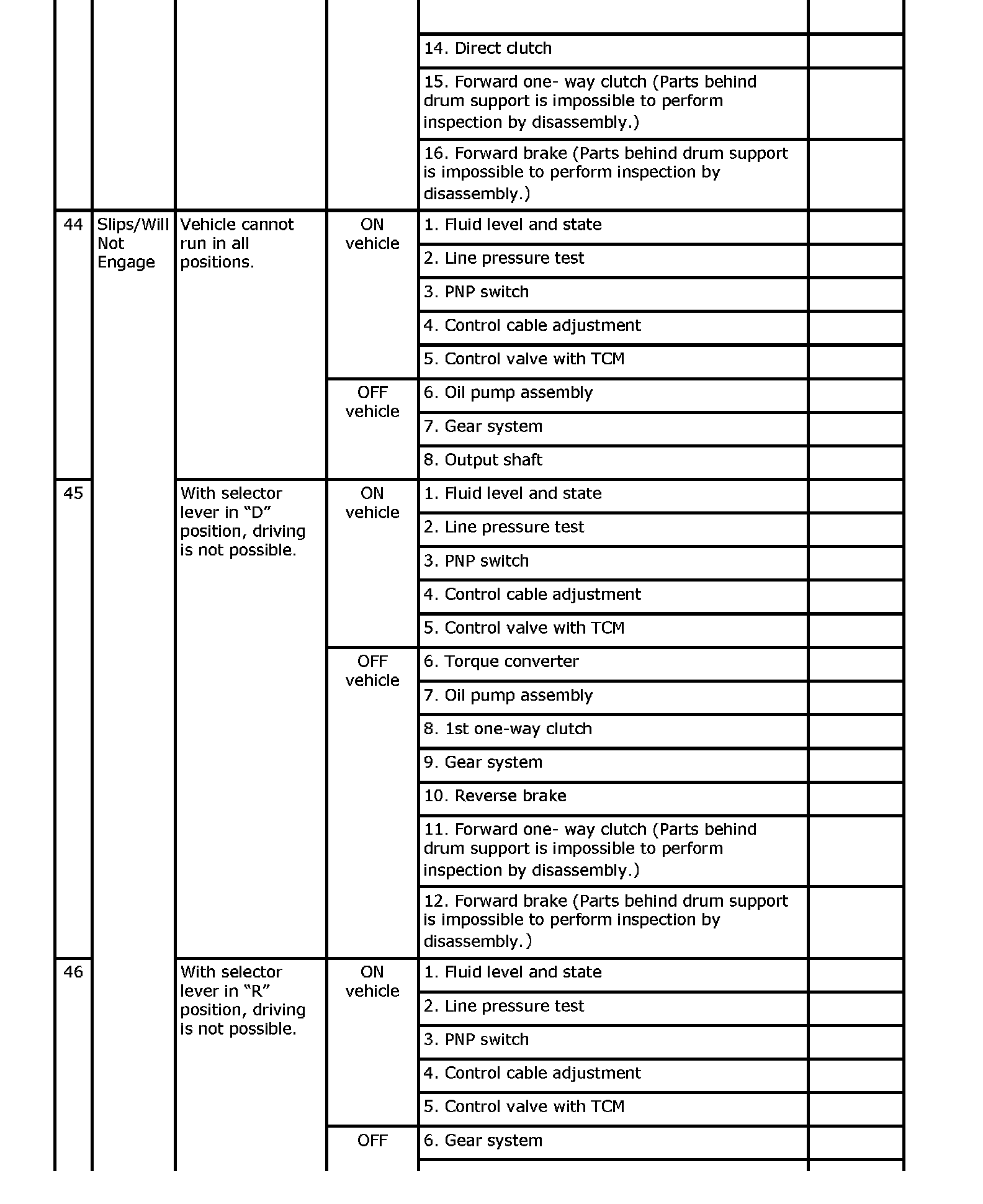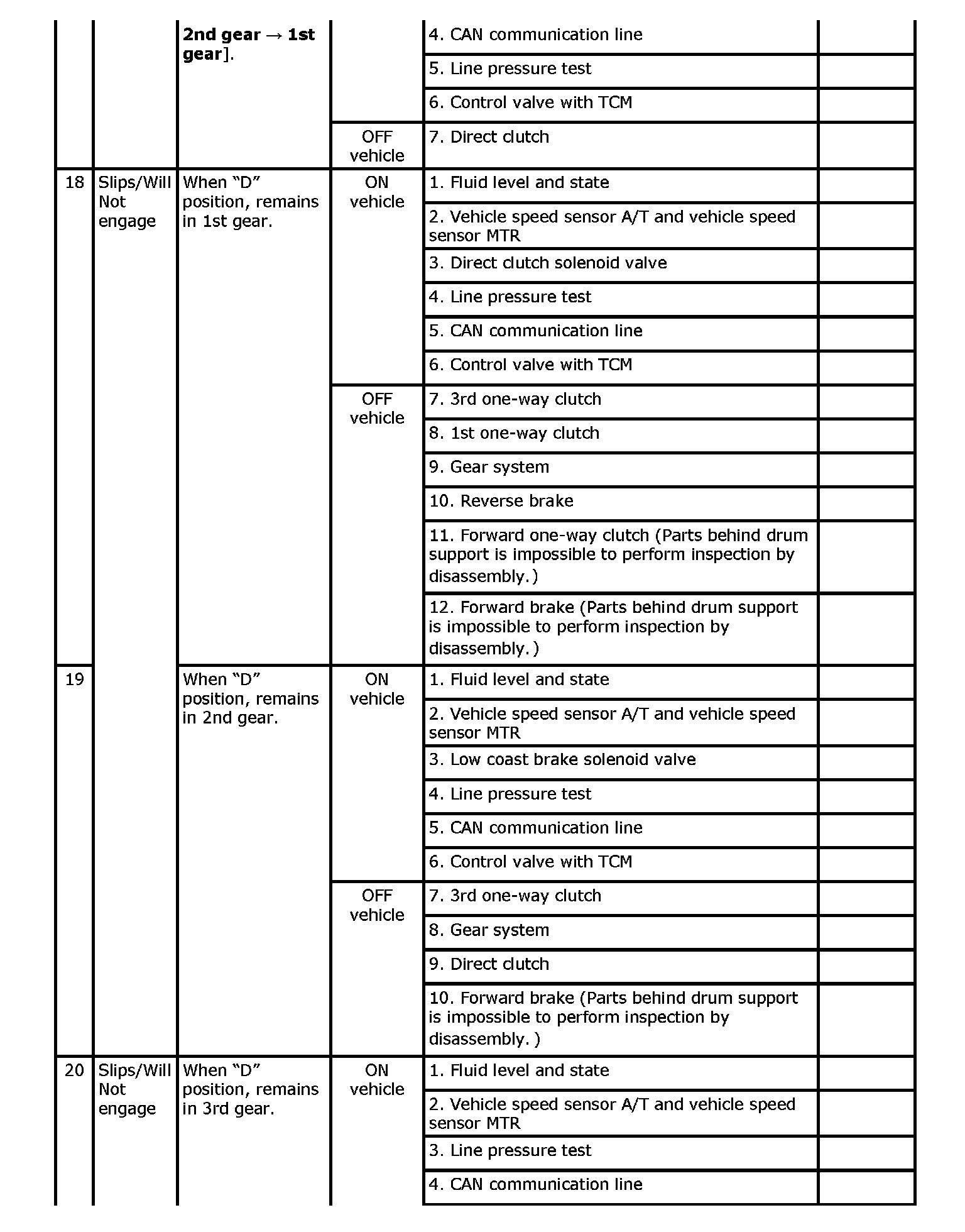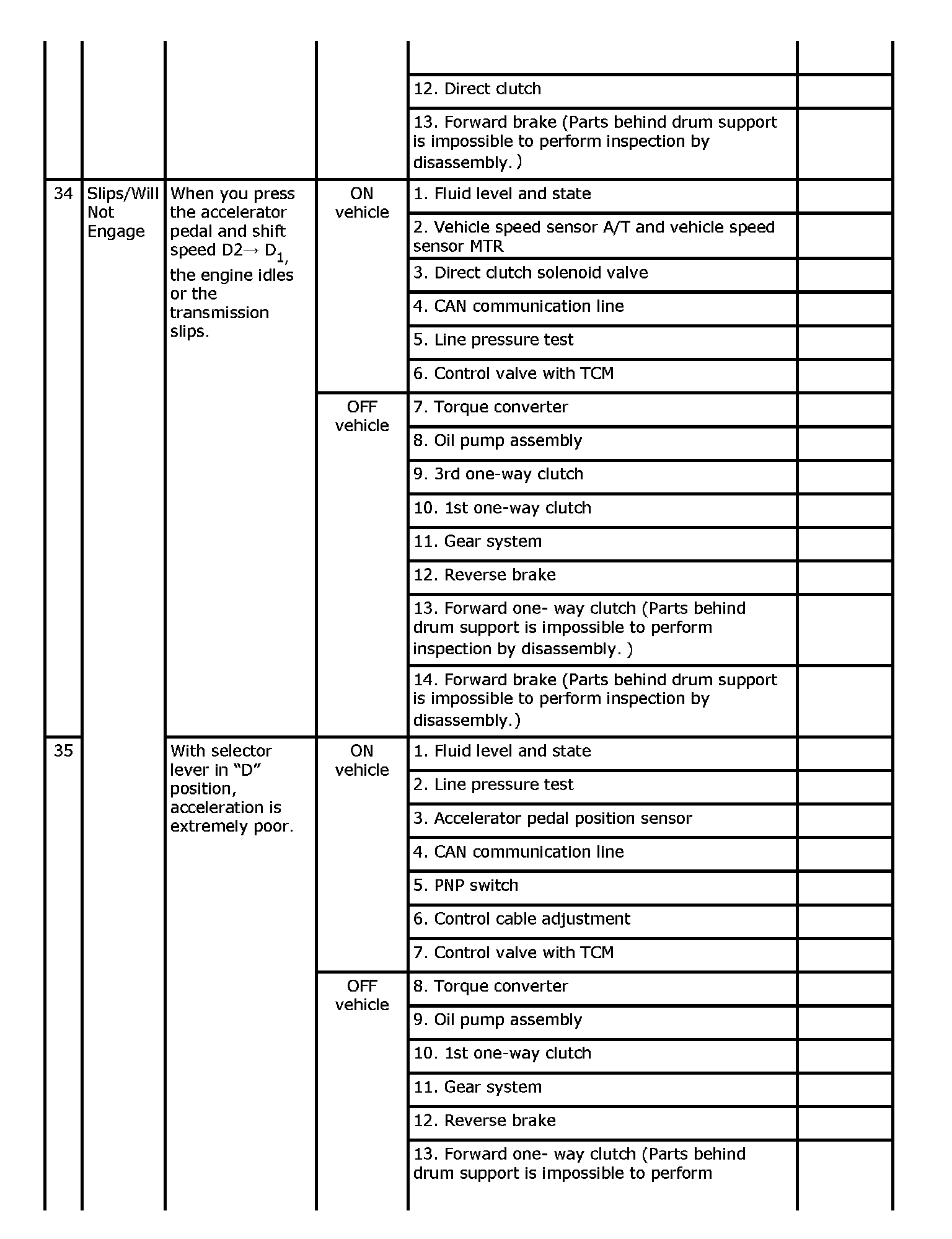 Overhaul and inspect inside the A/T only if A/T fluid condition is NG.