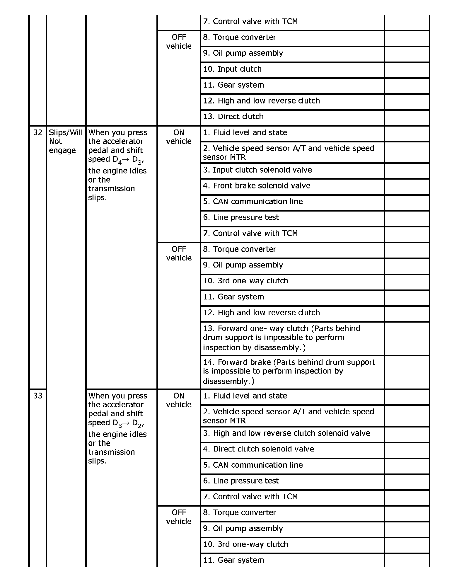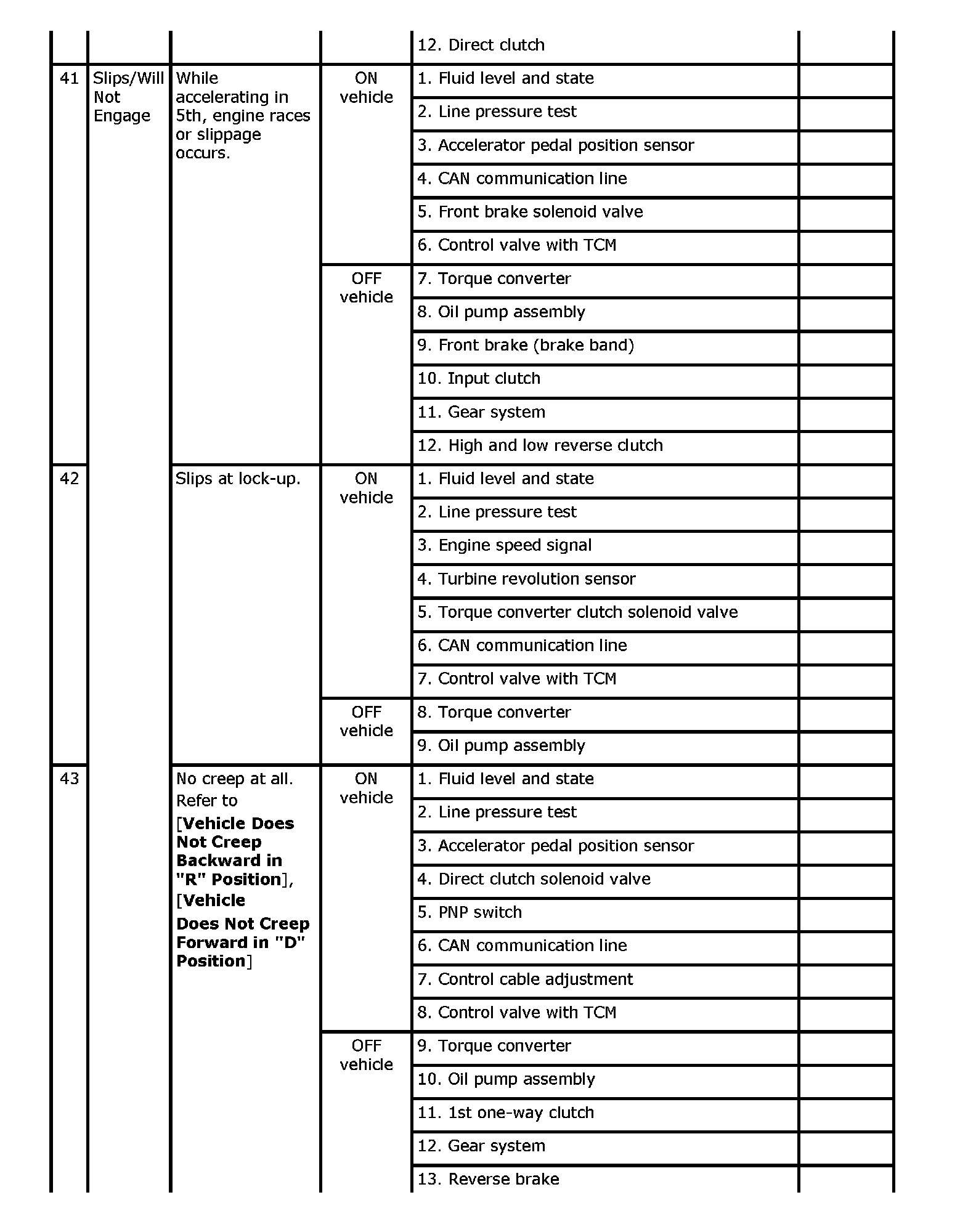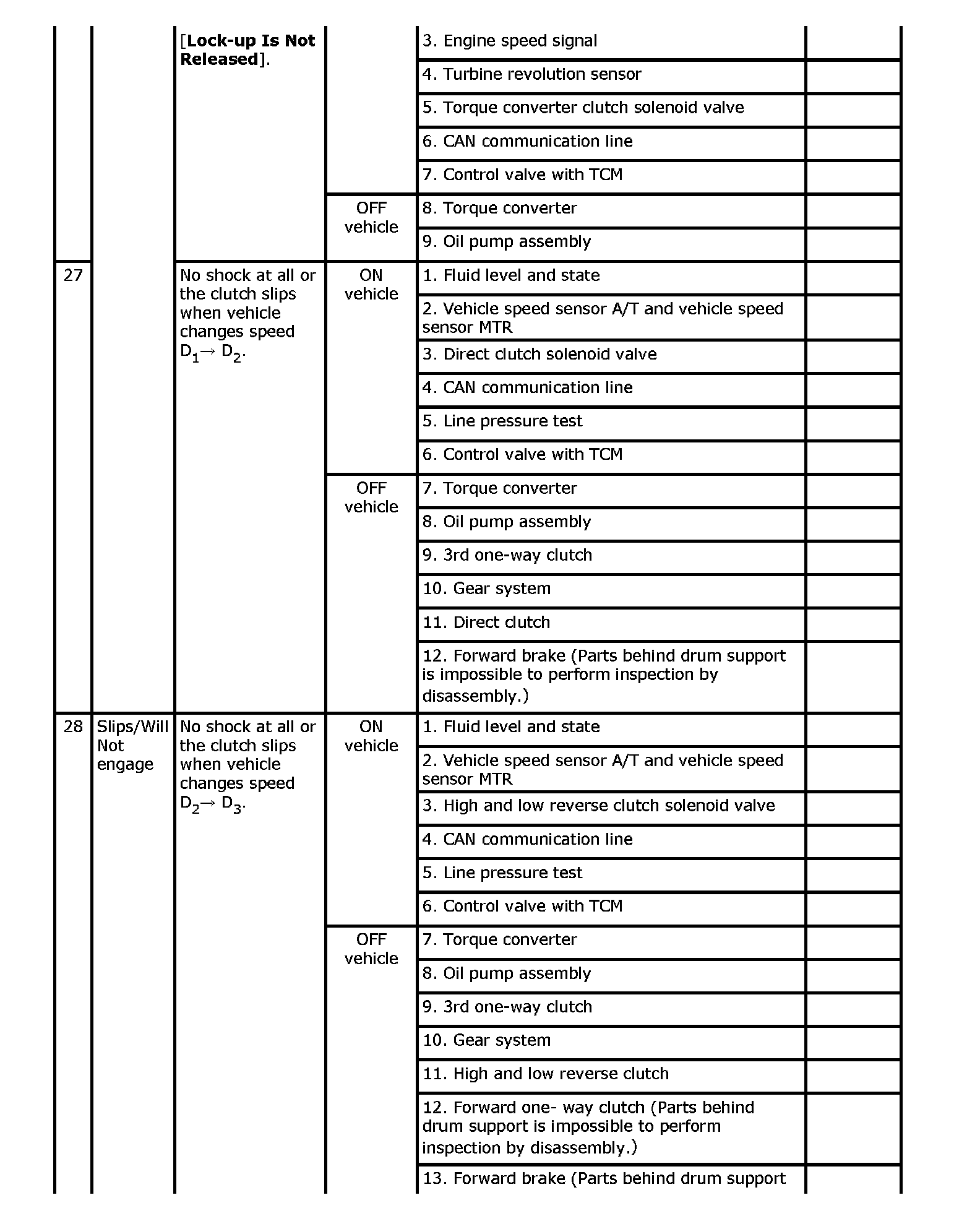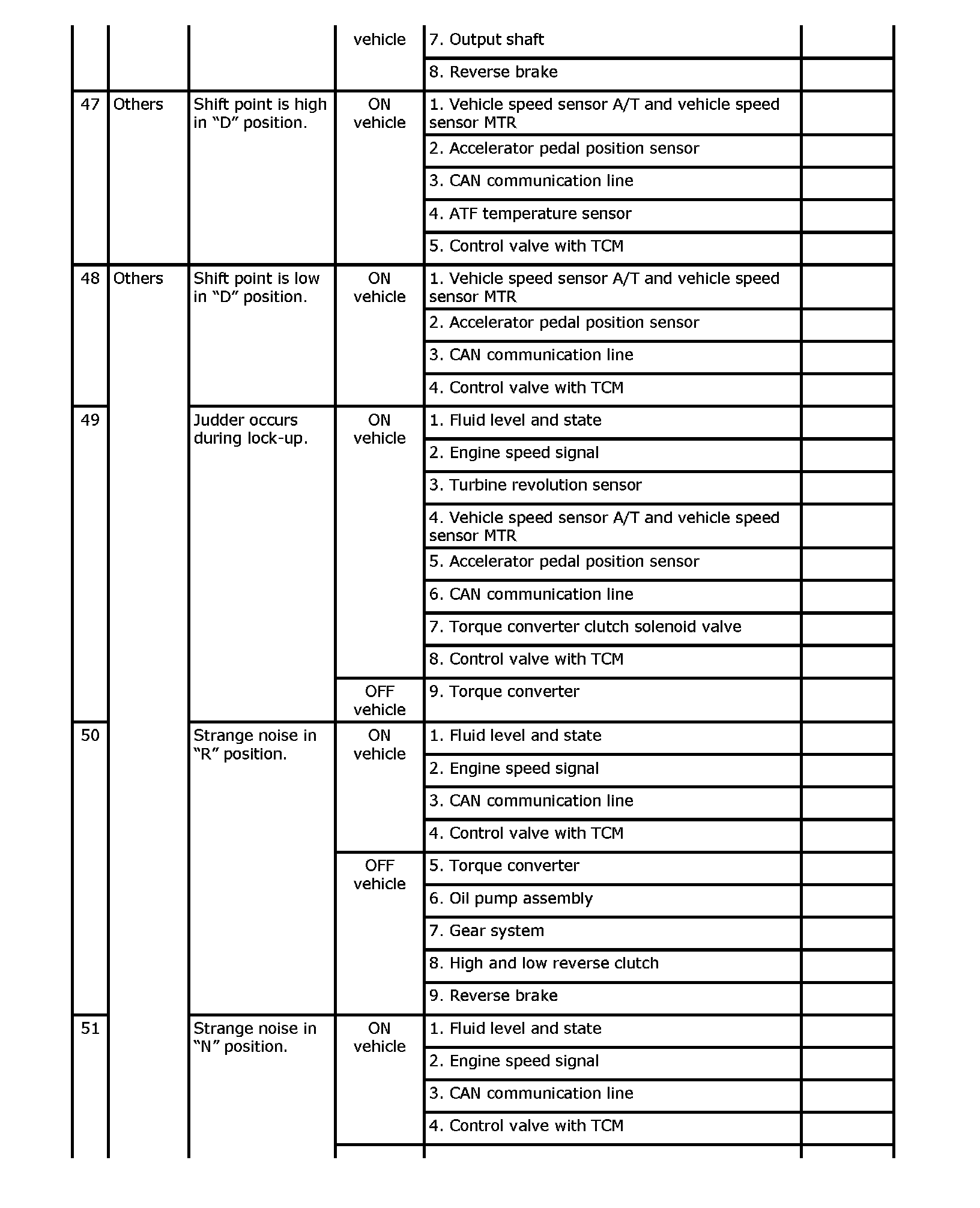 Overhaul and inspect inside the A/T only if A/T fluid condition is NG.