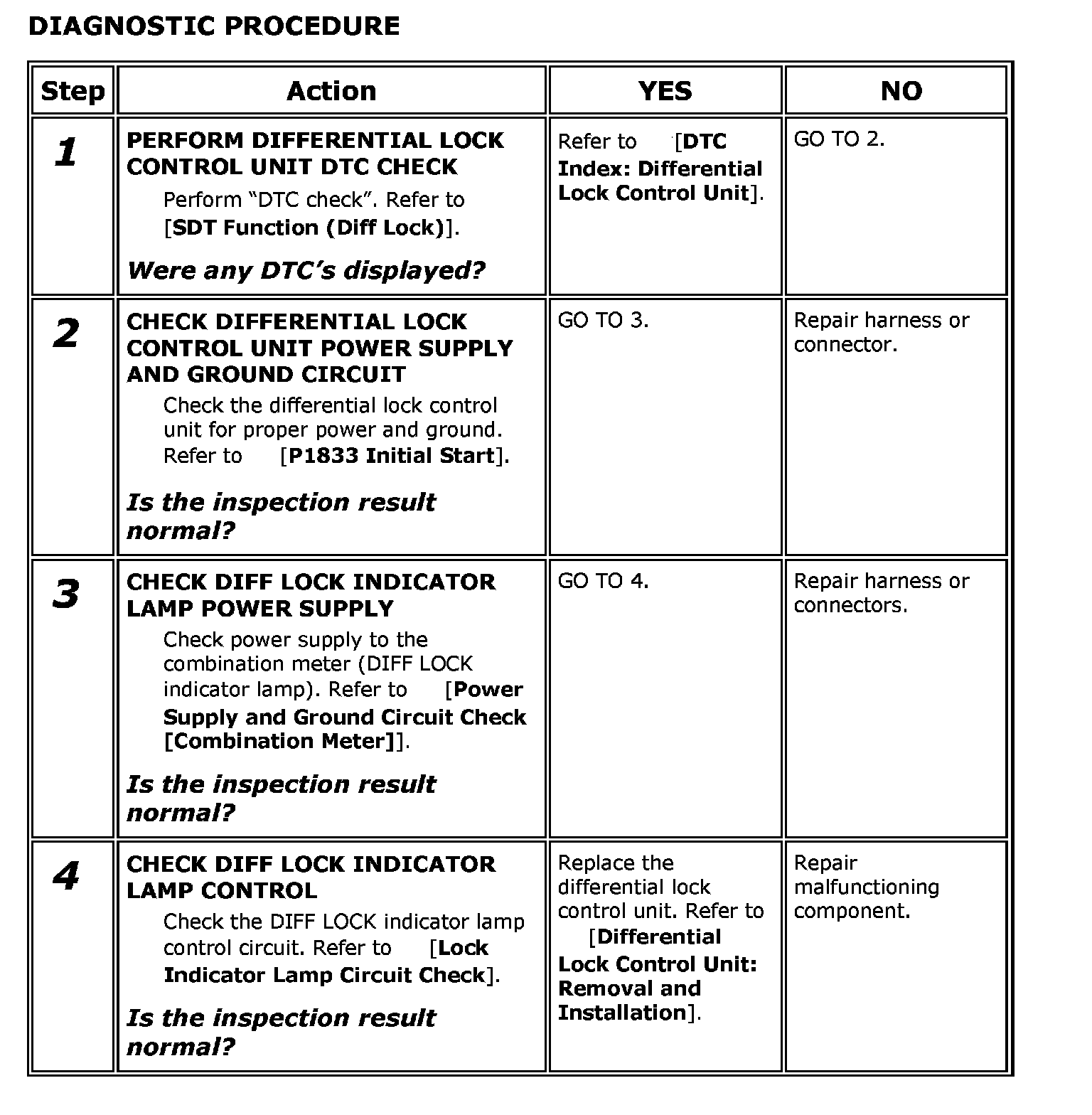 DIFF Lock Indicator Lamp Inoperative