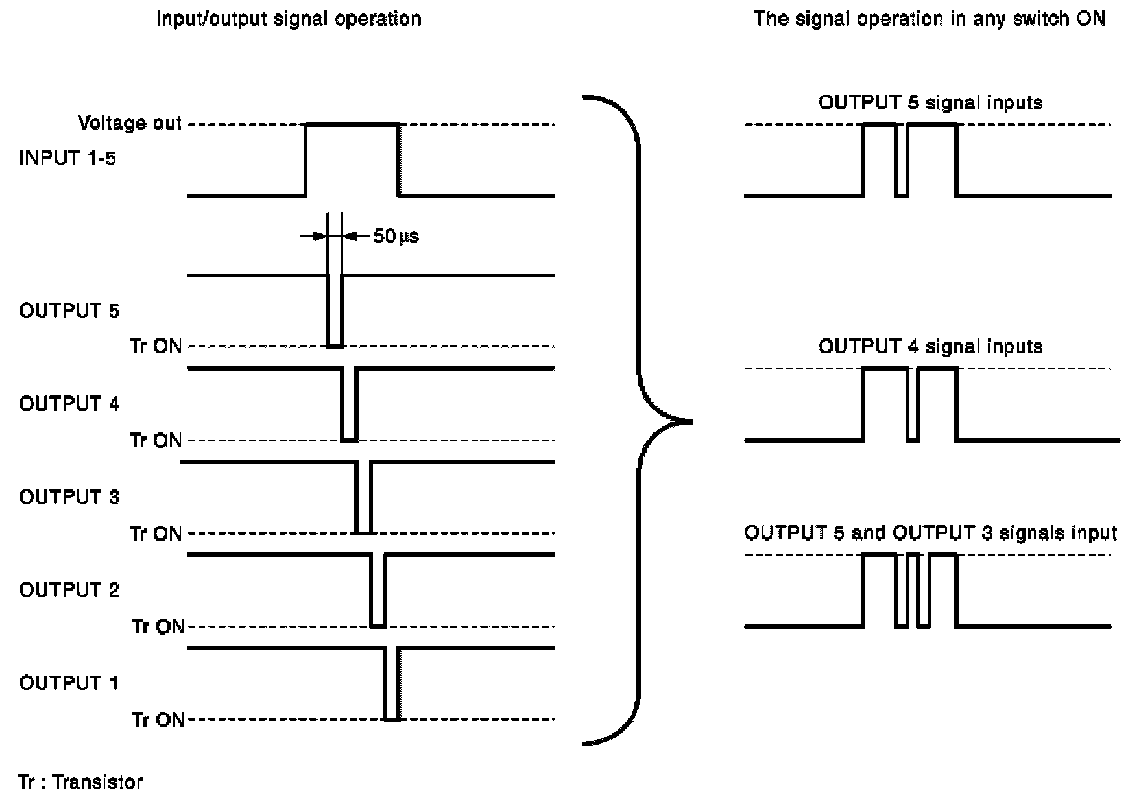 - It operates the transistor on OUTPUT side in the following order: OUTPUT 5 -> 4 -> 3 -> 2 -> 1.