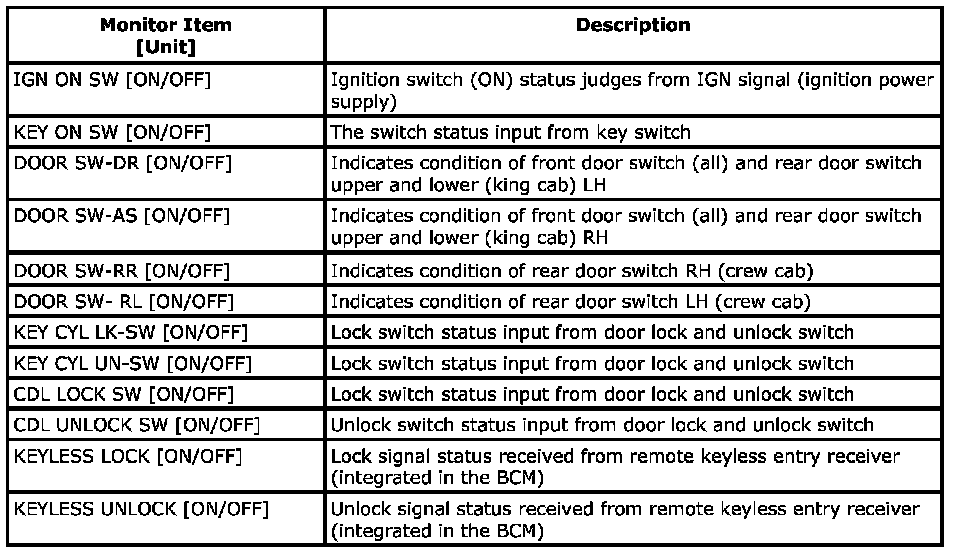 SDT Function (BCM - Int Lamp) [With Power Door Locks] - Data List: